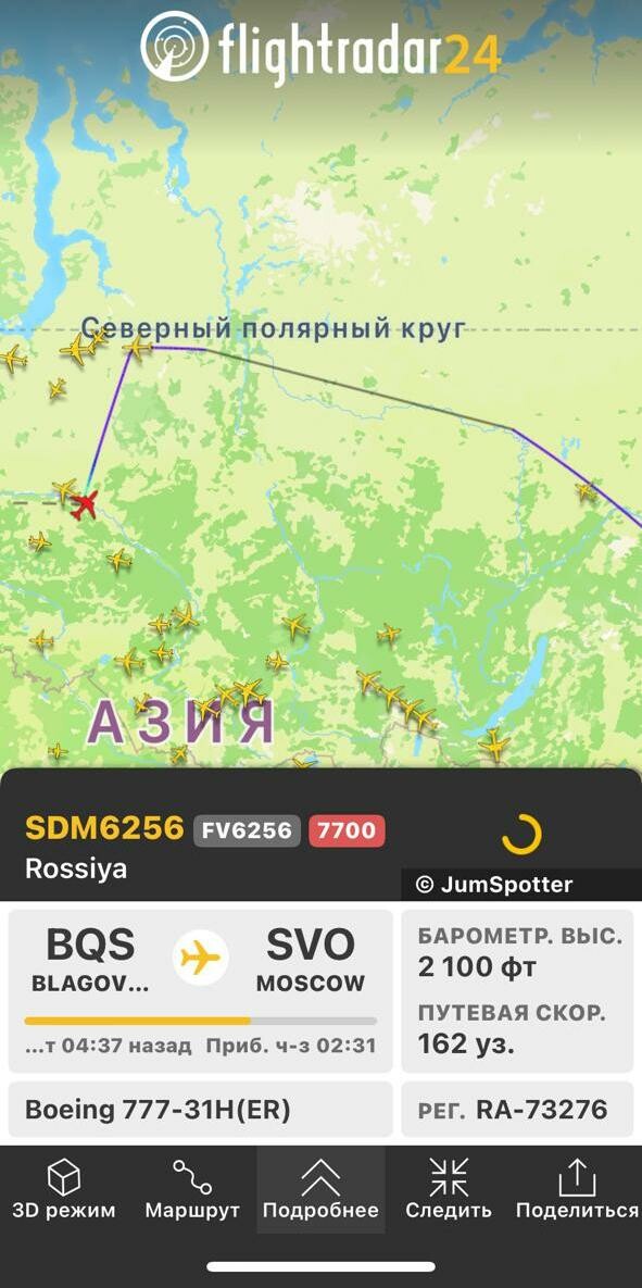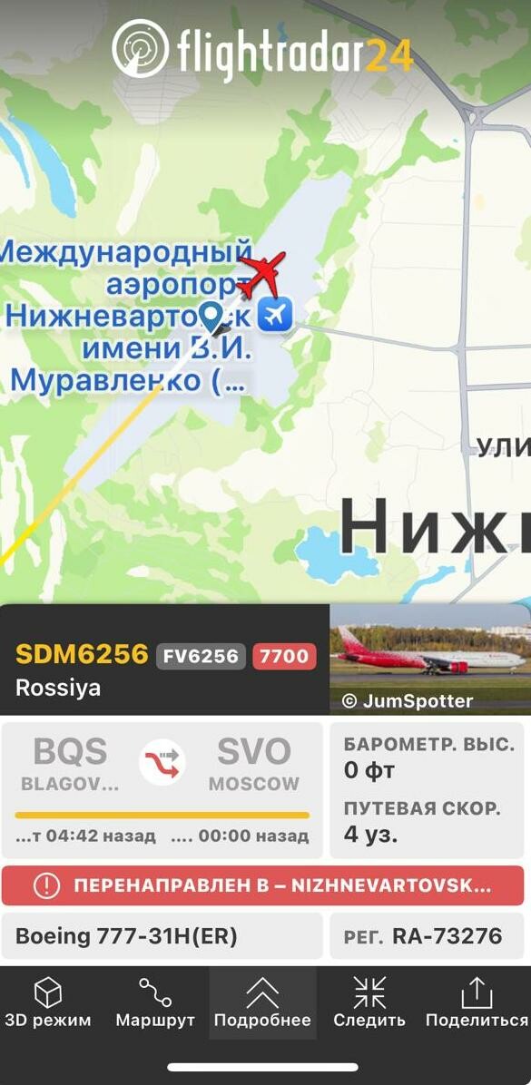Рейс SDM6256, следовавший из столицы Приамурья в Москву, совершил незапланированную посадку в Нижневартовске. Об этом сообщает Telegram-канал Авиаторы Благовещенск.