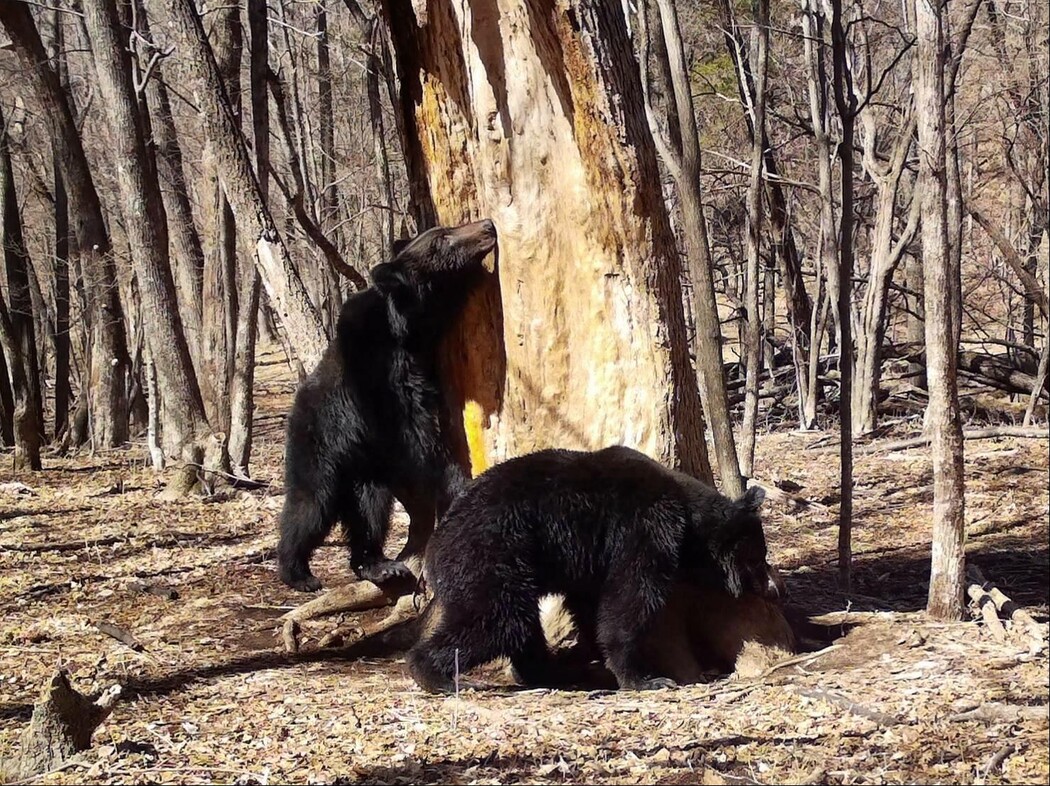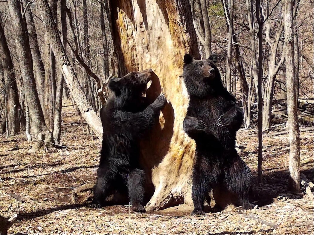 В Приморском крае на фотоловушку попали два самца бурого медведя третьего-четвертого года жизни у меточного дерева, начавшего свой рост еще два века назад. Медведи в кадре уже отделились от матери и живут самостоятельной жизнью, но ещё какое-то время держатся вместе, рассказали специалисты.