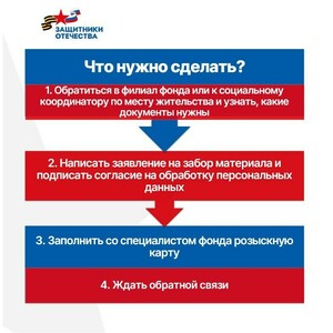 Фонд оказывает содействие в поиске без вести пропавших на специальной военной операции: проводит забор генетического материала (буккальный эпителий), заполняет розыскные карты и направляет в нужные структуры.