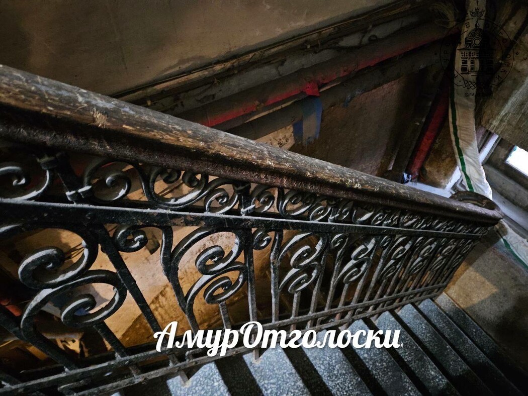 «Его подъезд — настоящая капсула времени. Создается полное впечатление, что за целый век здесь не только не делали ремонта — штукатурка осыпалась, обнажив кирпичную кладку, — но даже окна, кажется, ни разу не мыли, сохранив вековой слой пыли и копоти. Но в этом запустении есть подлинность: деревянные рамы, стекла, кованые перила и тяжелые двери, без сомнения, те самые, родные. Позже дом надстроили двумя этажами, и это читается в деталях — например, в перилах, где встретились две эпохи: утонченная эстетика прошлого и прагматичный минимализм настоящего», - сообщают «Амурские отголоски», сняв видео в историческом подъезде.