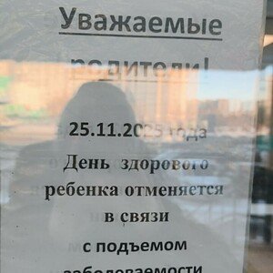 На двери размещено объявление об отмене дня здорового ребенка 25 ноября в связи с подъемом заболеваемости.