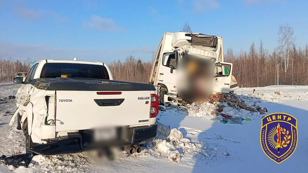 «Для оказания помощи на ДТП были привлечены: ПЧ-34 Амурского центра ГЗ и ПБ из села Тыгда; скорая медицинская помощь, сотрудники ГИБДД Магдагачинского округа. В результате столкновения повреждения получили 3 автомобиля: грузовой фургон Hino, магистральный тягач Volvo c прицепом, Toyota HILUX. Водитель Hino погиб на месте, спасатели из ПЧ-34 деблокировали тело», – сообщили в Амурском центре ГЗ и ПБ.