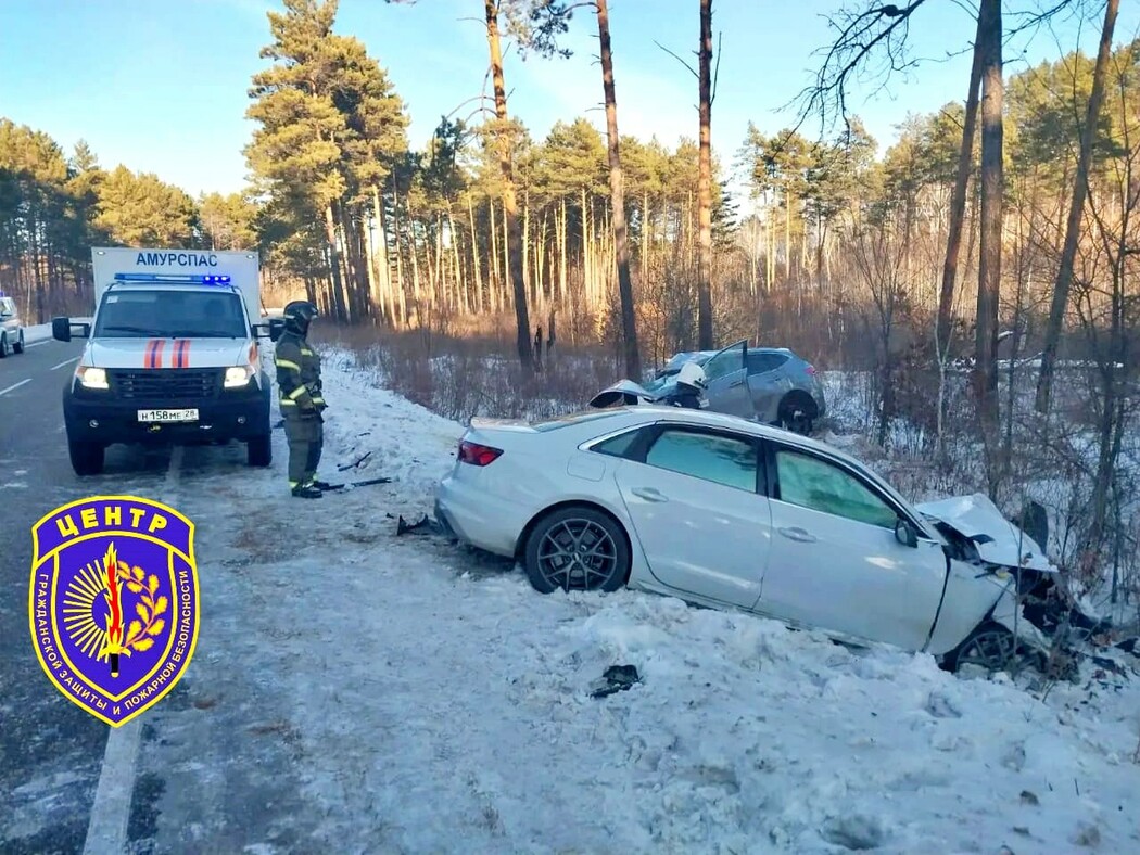 Сообщение о дорожно-транспортном происшествии на 105-м километре автомобильной дороги Благовещенск – Свободный поступило 23 ноября в 13:40. В результате столкновения двух легковых автомобилей погиб водитель автомобиля Haval G7, пострадали 2 человека которые находились в автомобиле Audi A4.