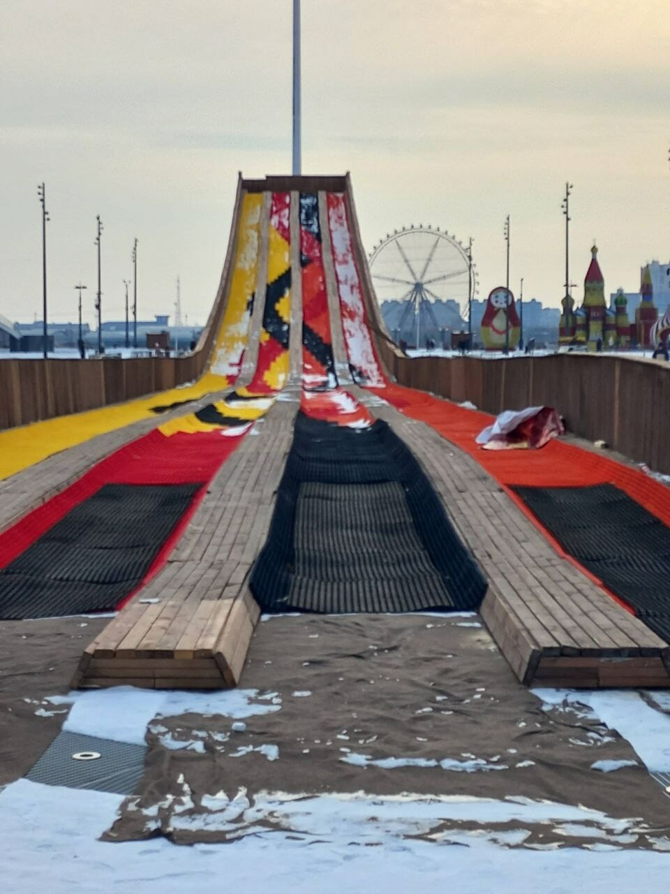 Власти обещают сдать горку в начале декабря. Возводить ее начали в середине октября. Высота объекта – 14 метров (примерно 5-этажный дом), а длина спуска – до 150 метров, сообщали власти. Стоимость превысила 3 миллиона рублей. Также власти говорили, платным или бесплатным станет аттракцион.