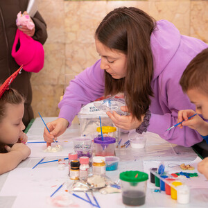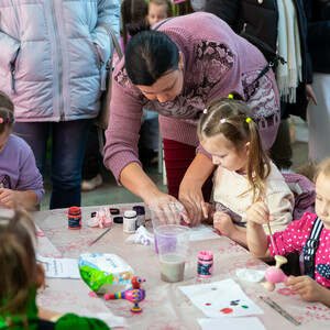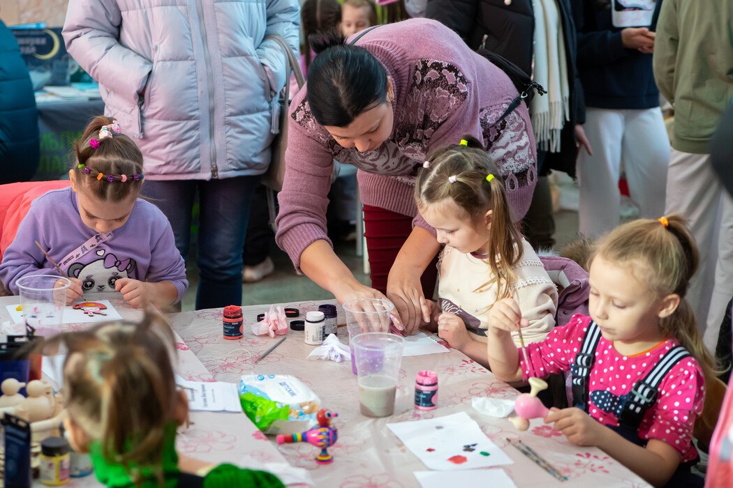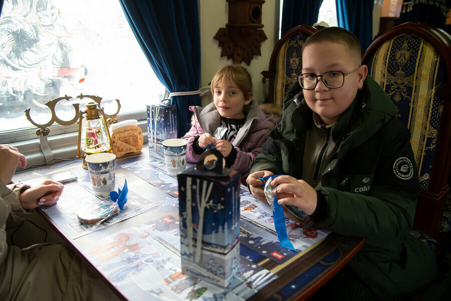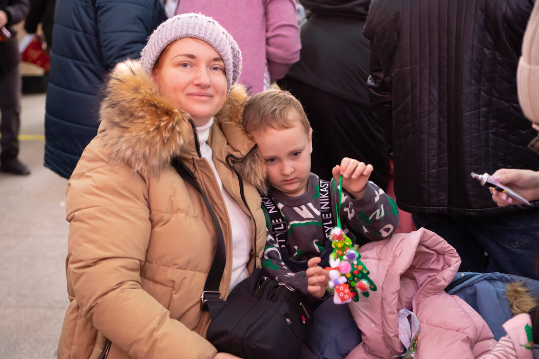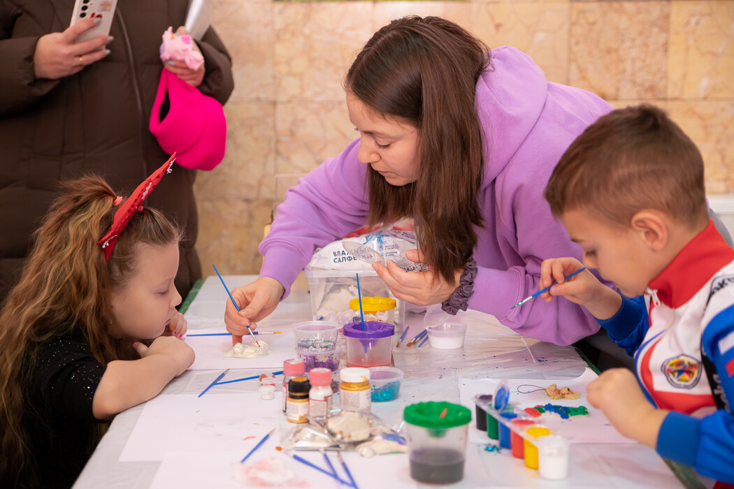 Горожане, которые пришли встретить поезд, на время его задержки переместились в здание железнодорожного вокзала, где для детей были подготовлены мастер-классы.
