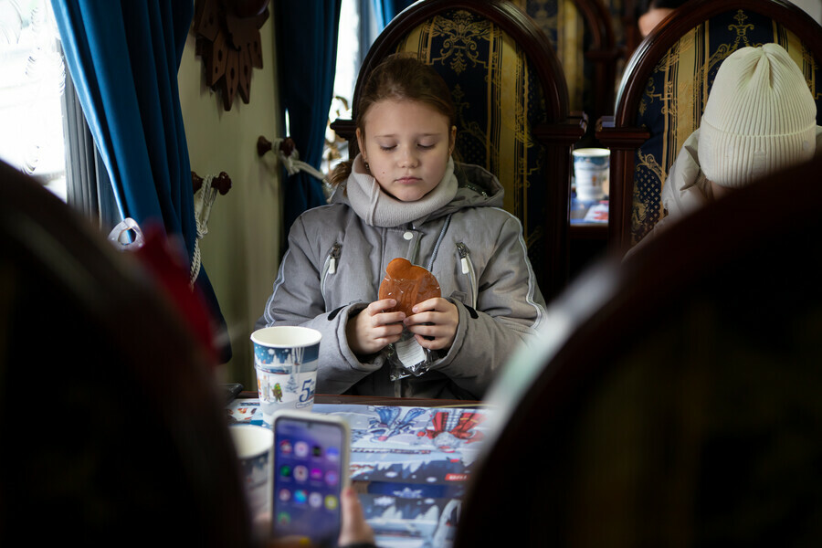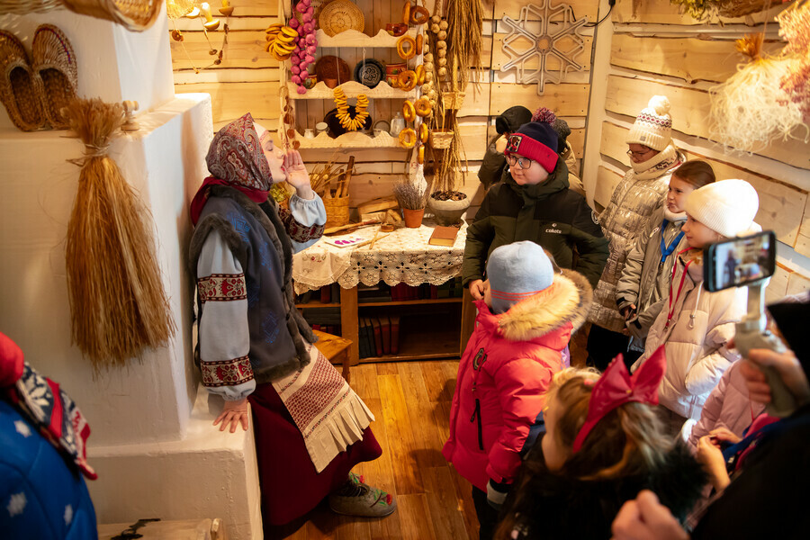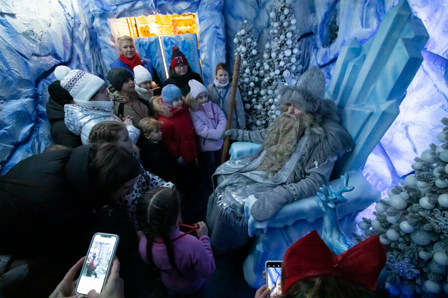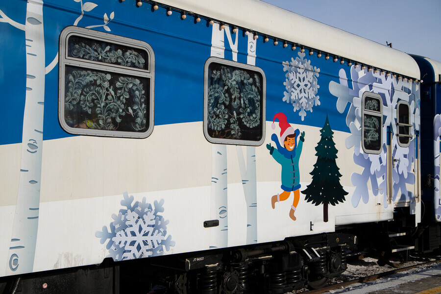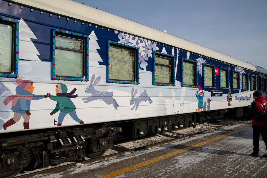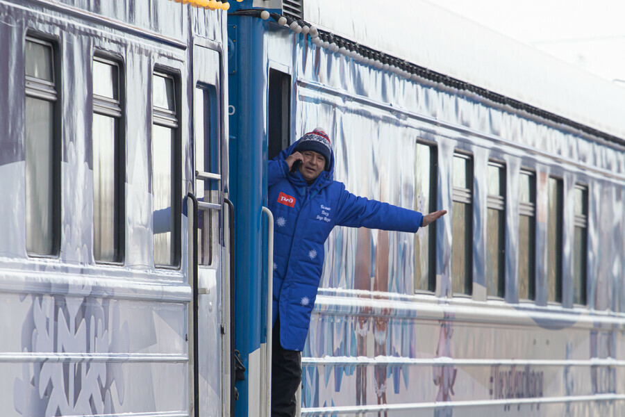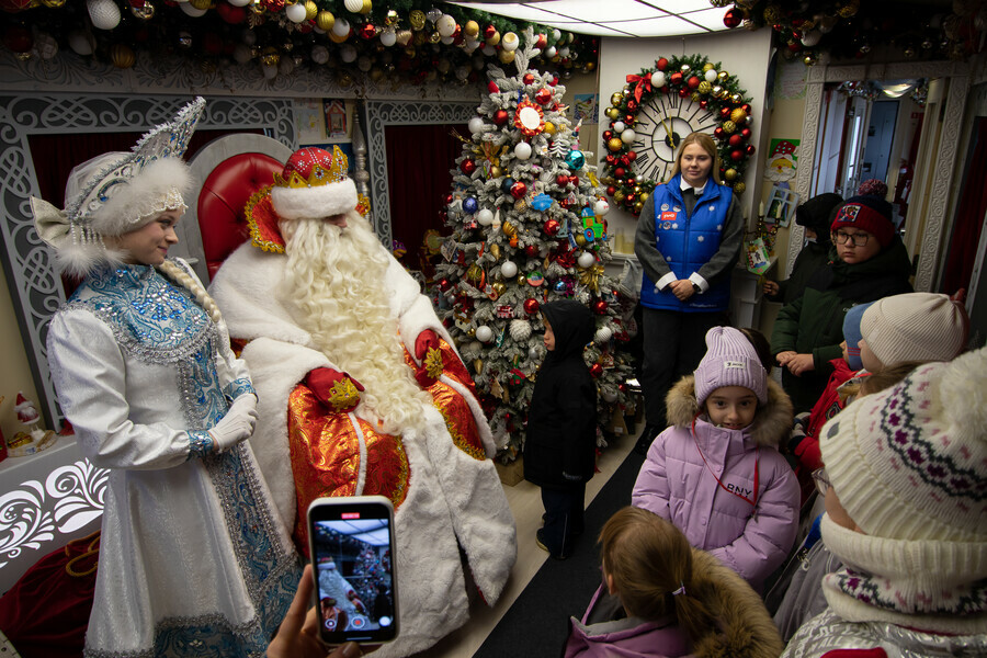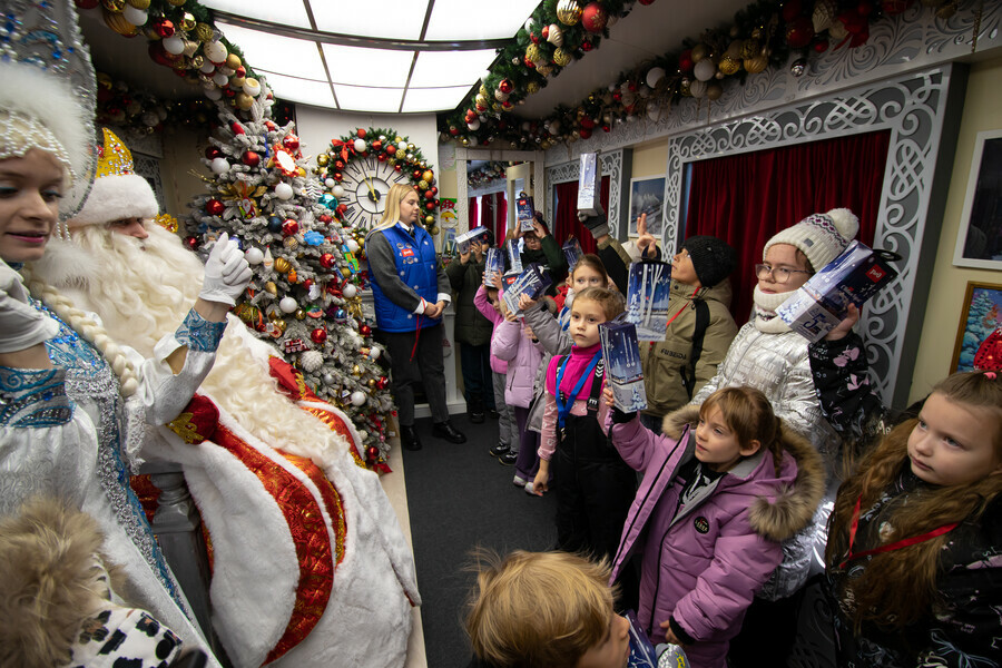 Те, кто успел приобрести билеты, смогли попасть и в основные вагоны поезда – приемную Деда Мороза, сказочную деревню, театр кукол. В несколько вагонов – «Снежная Королева», «Лавка», «Буфет» – посещение было свободным для всех желающих.
