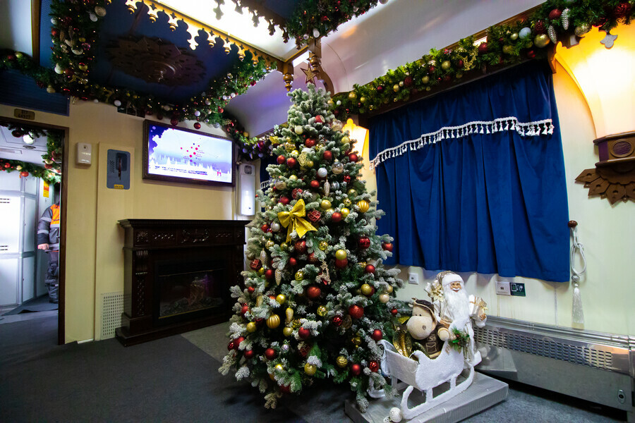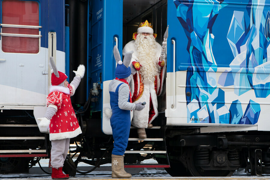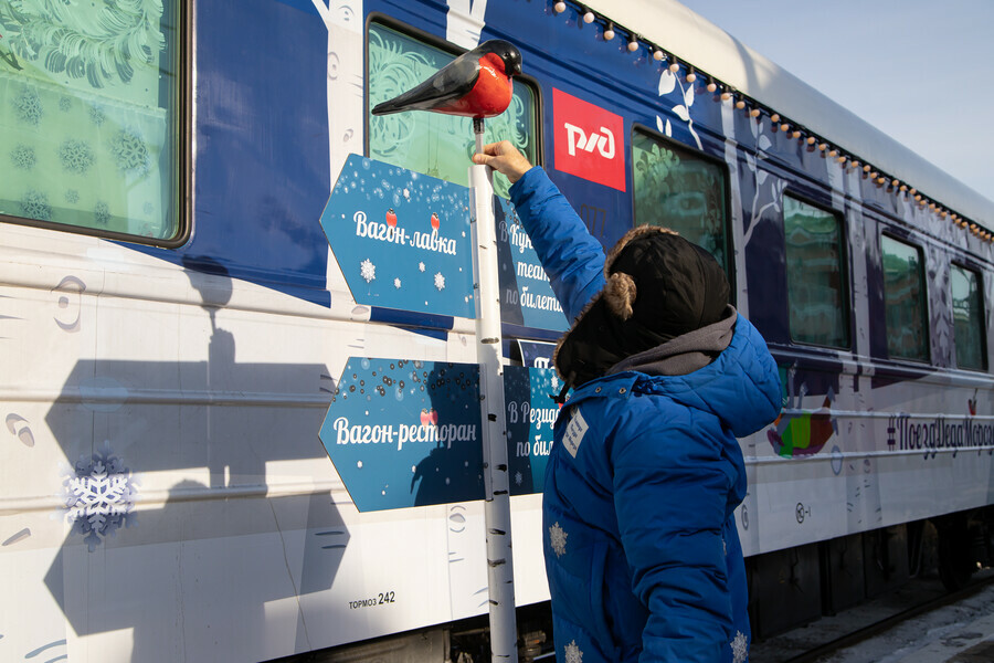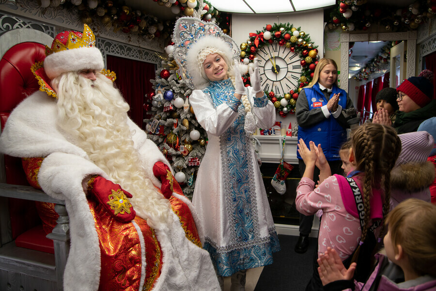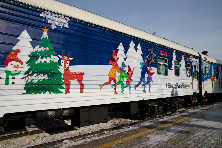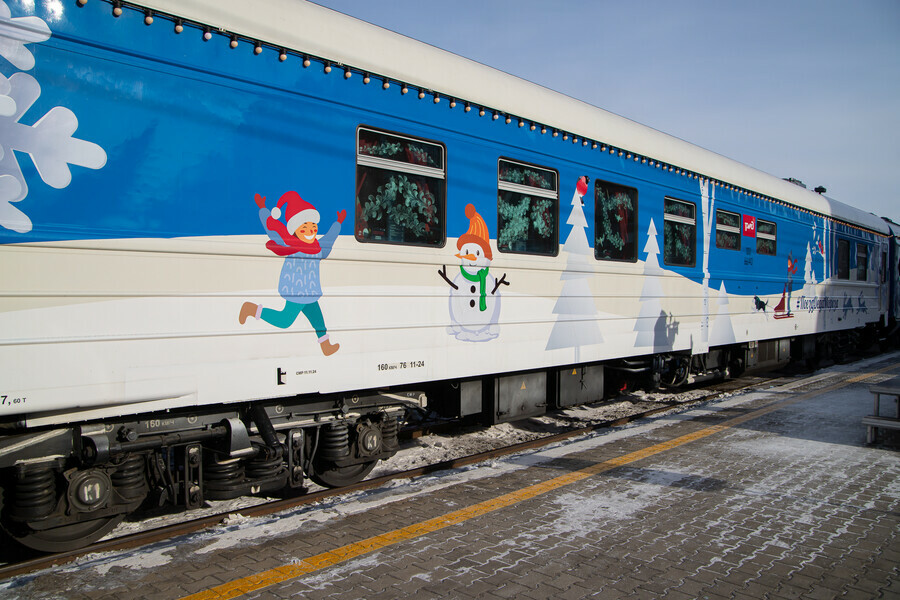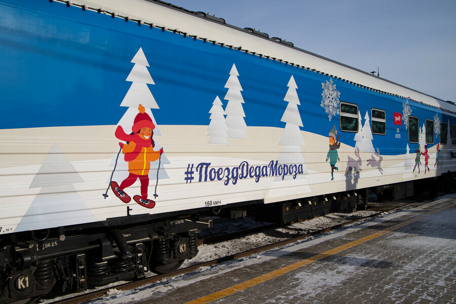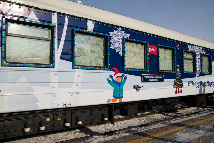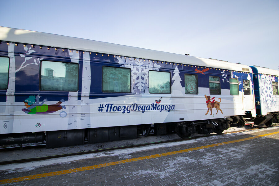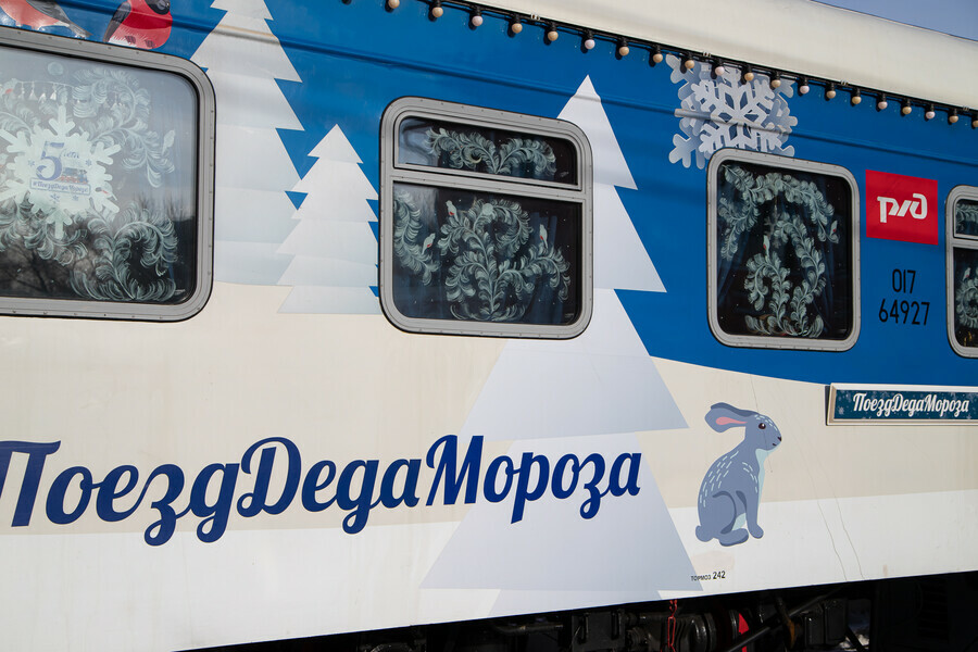 Поезд Деда Мороза – это празднично оформленная передвижная резиденция с вагонами для развлечения детей. Это юбилейный пятый сезон проекта. Расписание движения поезда можно посмотреть по ссылке.