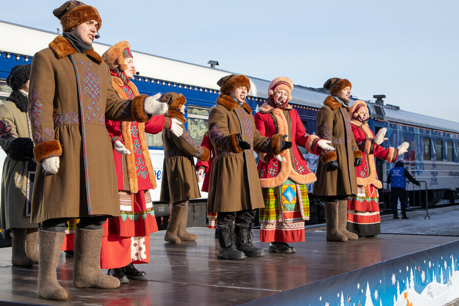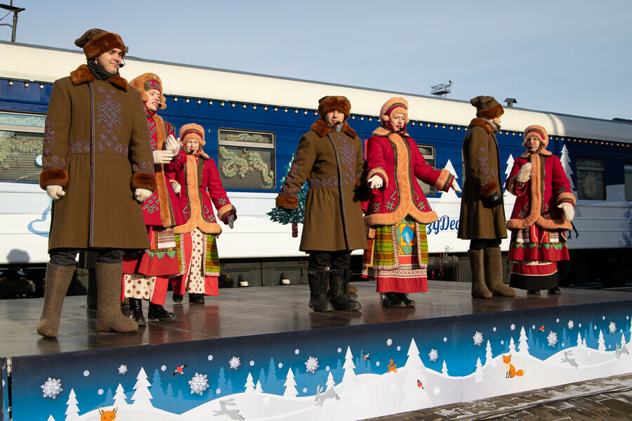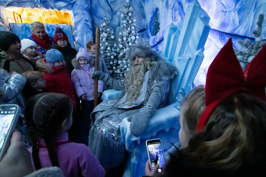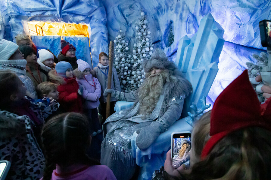 По прибытии для зрителей было устроено представление с участием местных артистов, а после к гостям вышел и сам главный герой - Дед Мороз.
