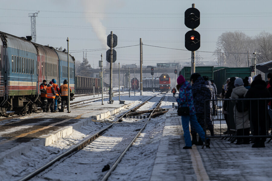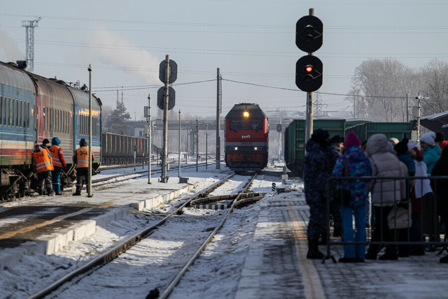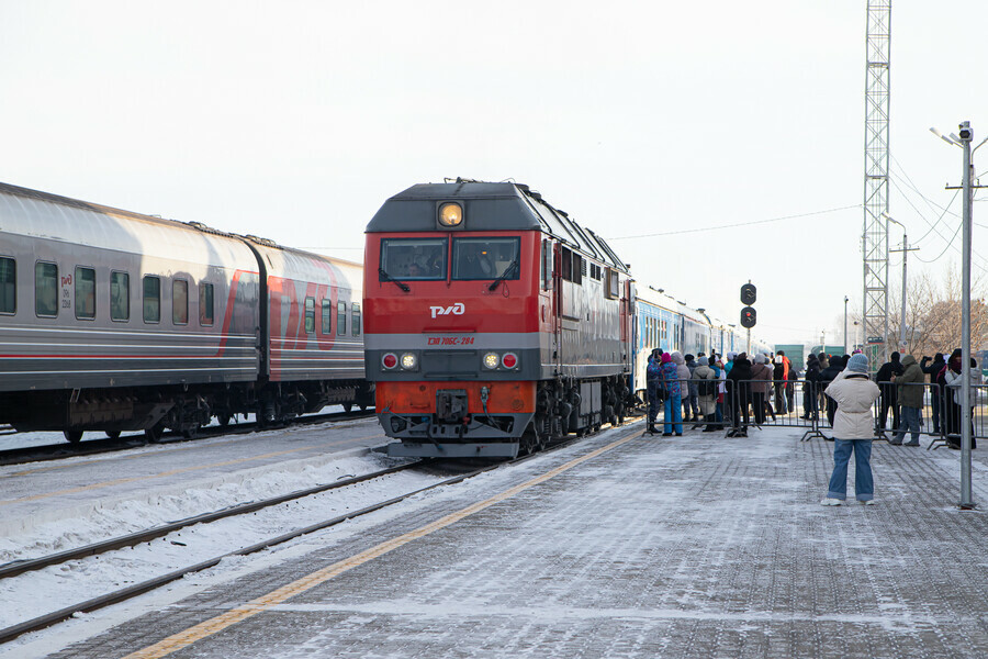 По расписанию прибытие поезда ожидалось в 11 часов утра, однако, по словам горожан, он довольно сильно припозднился.