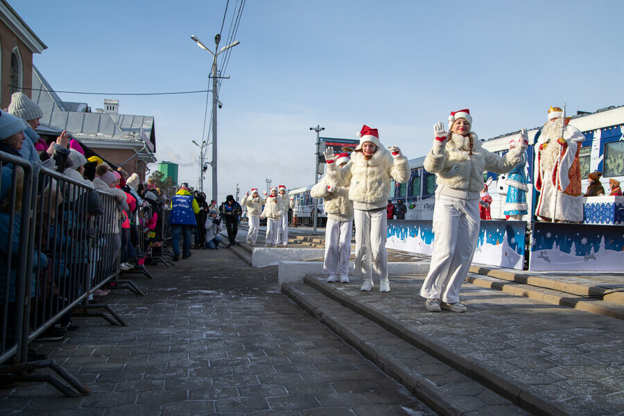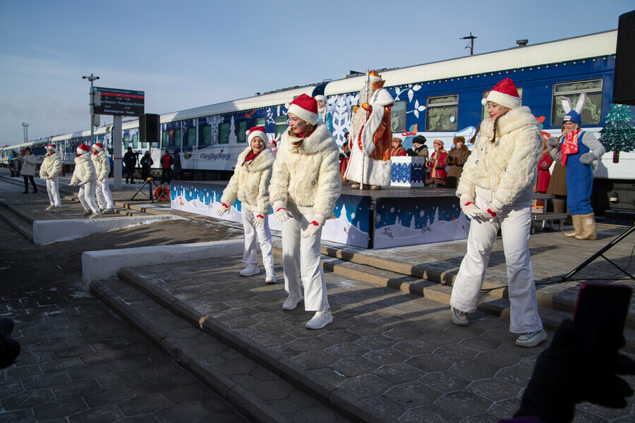 В амурской столице во вторник, 25 ноября, встретили поезд Деда Мороза. Для горожан подготовили программу, которая предполагала, как бесплатные мероприятия, так и платные, включая встречу с новогодним волшебником и его свитой в самом поезде.