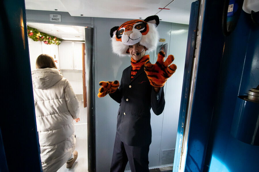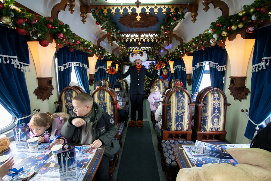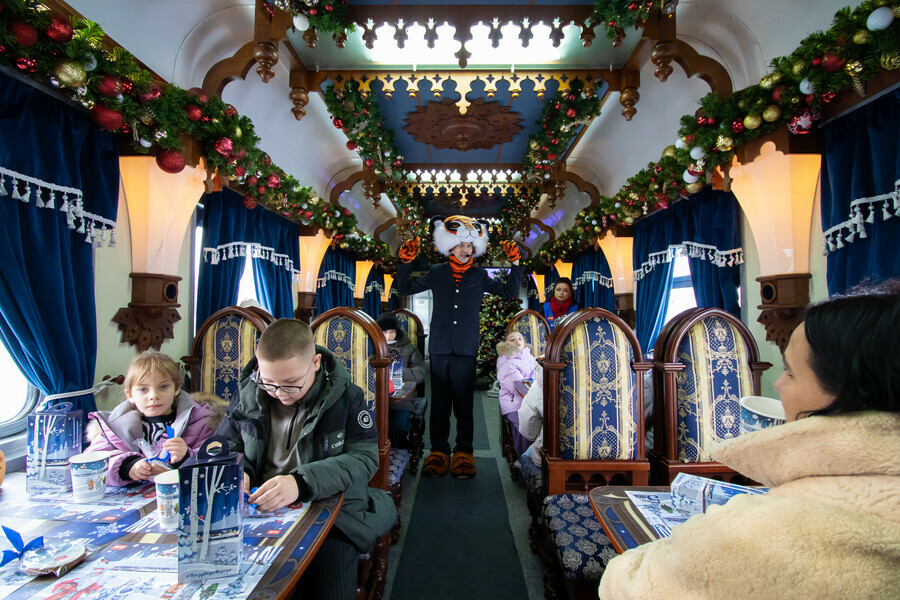 «Поезд Деда Мороза привез в Благовещенск не только атмосферу праздника, но и трескучий мороз. Каждый вагон – это отдельная страница сказочного рассказа, со своей атмосферой и обитателями. Детей встретил сказочный лес, с растущими на ели волшебными грибами, Дедушка "Треск" на ледяном троне, Хозяюшка в русской народной избе, волшебный вагон-ресторан с обаятельным официантом амурским Тигром, сам Дедушка Мороз и Снегурочка в своей "мобильной" резиденции», – так поэтично описал происходящее один из гостей события.