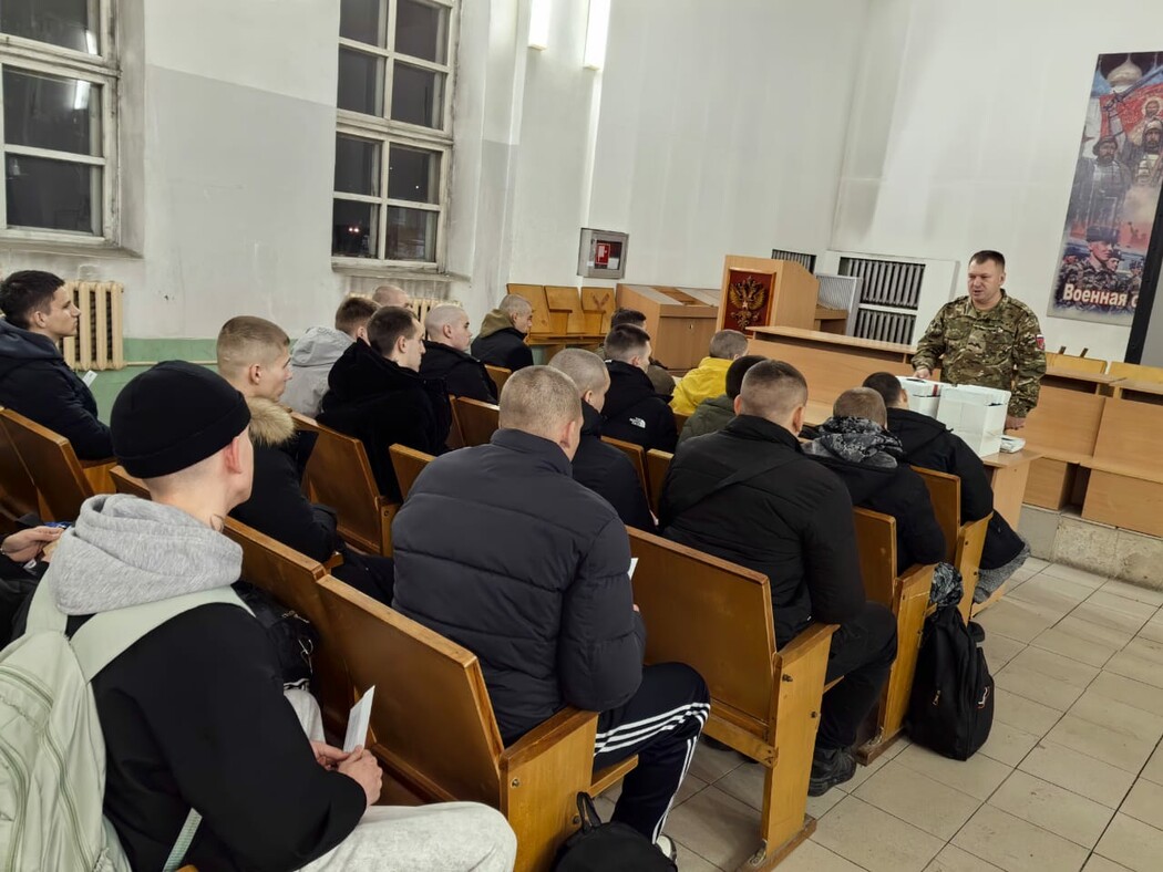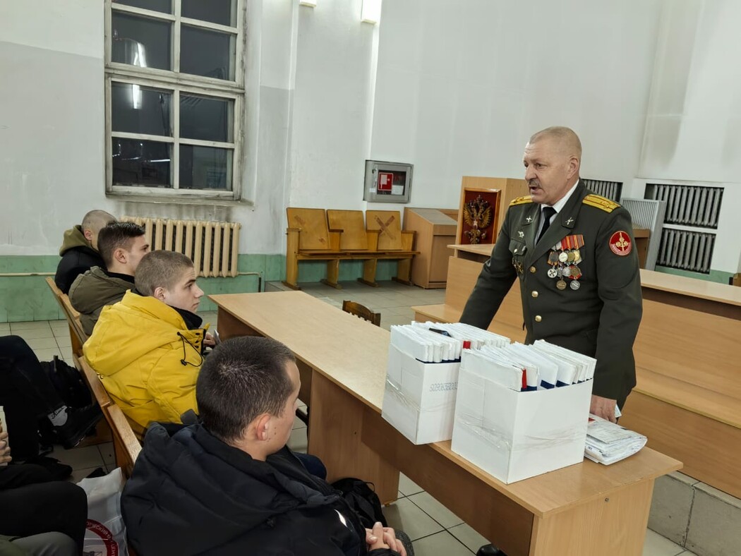 К призывникам в военном комиссариате с напутственными словами обратились начальник отделения подготовки и призыва граждан на военную службу Мария Нежинская, иерей Виктор Киушкин, начальник мобилизационного отдела администрации Владимир Аносов, начальник штаба местного отделения «Юнармия» Николай Богданович, председатель общества ветеранов Афганистана Александр Костромин.