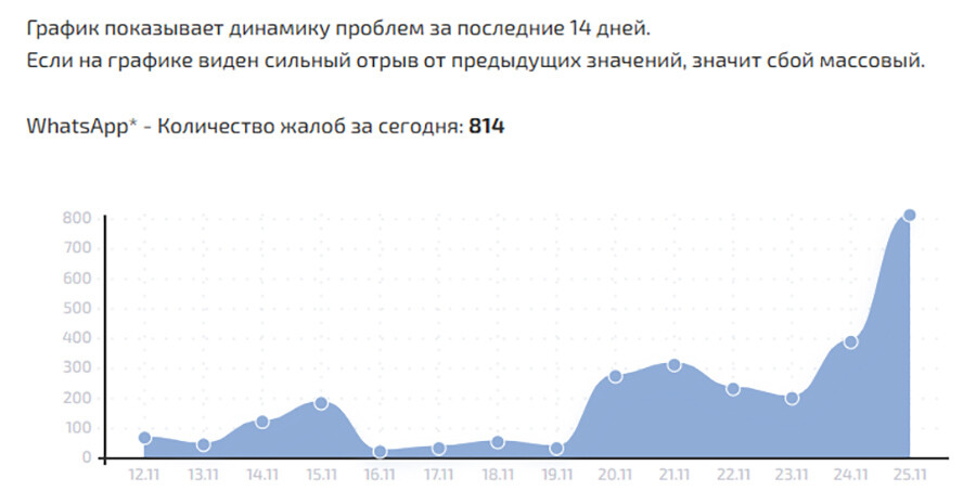 «Не могу загрузить WhatsApp* на компьютере. Это началось около 8 утра. Потом то появится, то пропадет. На телефоне тоже – не отправляются ни сообщения, ни фотографии»; «Сегодня что-то происходит с WhatsApp* – не позволяет отправлять никакие данные»; «Тихий ужас какой-то, как сегодня работает WhatsApp*. Сообщения могут отправляться часами и в итоге могут так и не дойти до адресата. Я, в свою очередь, тоже не все сообщения получаю. До этого тоже были перебои со связью, но сегодня прям апогей какой-то», – подобные сообщения редакция Amur.life, получает во вторник, 25 ноября, с самого утра.