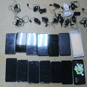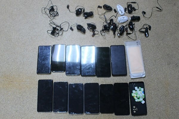 Оказалось, что свыше десятка телефонов, 16 наушников и около 30 сим-карт были спрятаны в банках с краской, имеющих двойное дно.