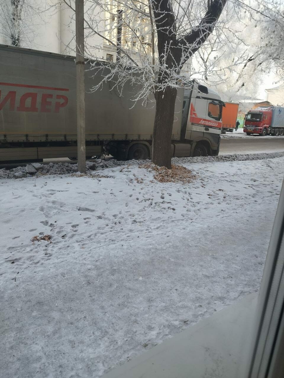 Жители областного центра продолжают жаловаться на водителей большегрузов, которые устраивают стихийные парковки прямо на улицах. На этот раз фуры решили устроить парковку в районе Амурской, 9.