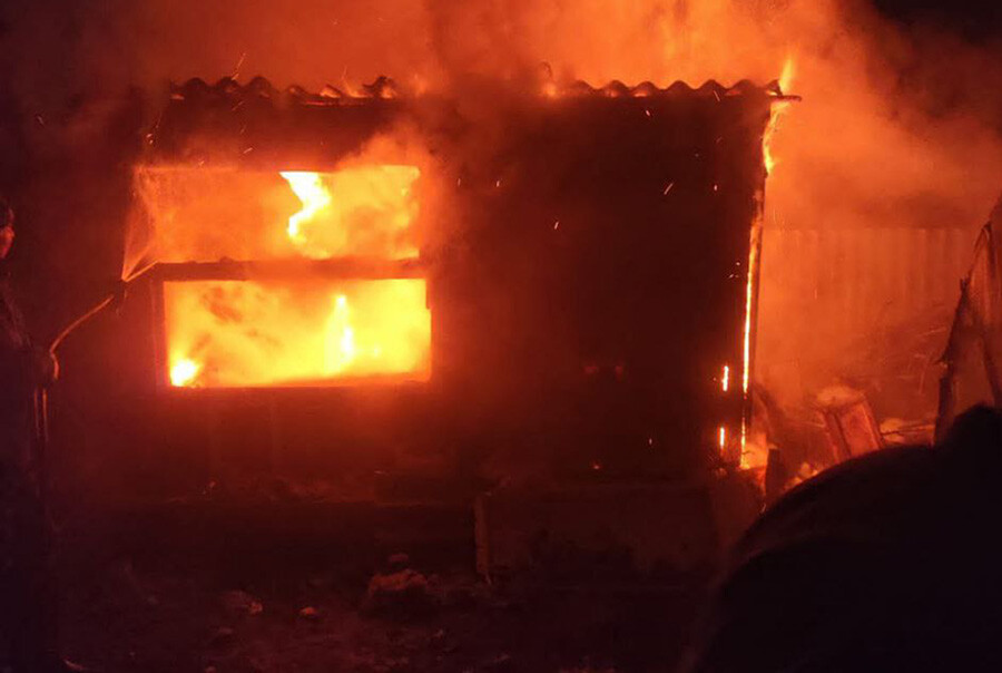 Постройка особой ценности не представляла, но огонь мог перекинуться на объекты, расположенные рядом, в том числе под угрозой оказалась местная торговая точка. На момент прибытия пожарных из ПЧ-54, остатки здания горели открытым пламенем, стены и кровля уже обрушились.