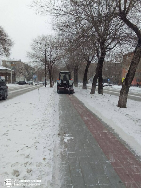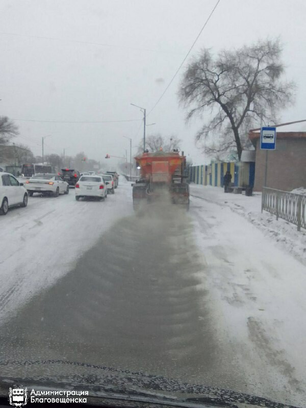 С началом снегопада сотрудники ГСТК перешли на усиленный режим. На улицах Благовещенска сейчас работает как техника – 23 единицы, так и 4 привлечённые спецмашины. Задействовано 40 сотрудников, часть из них отозвана с выходных.
