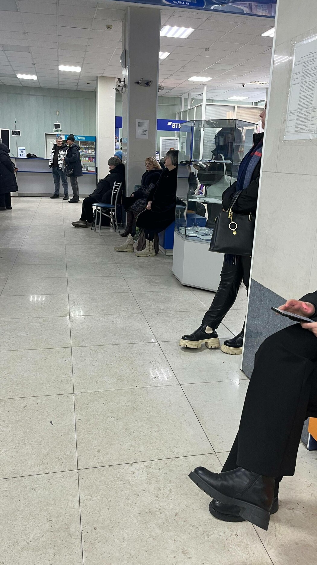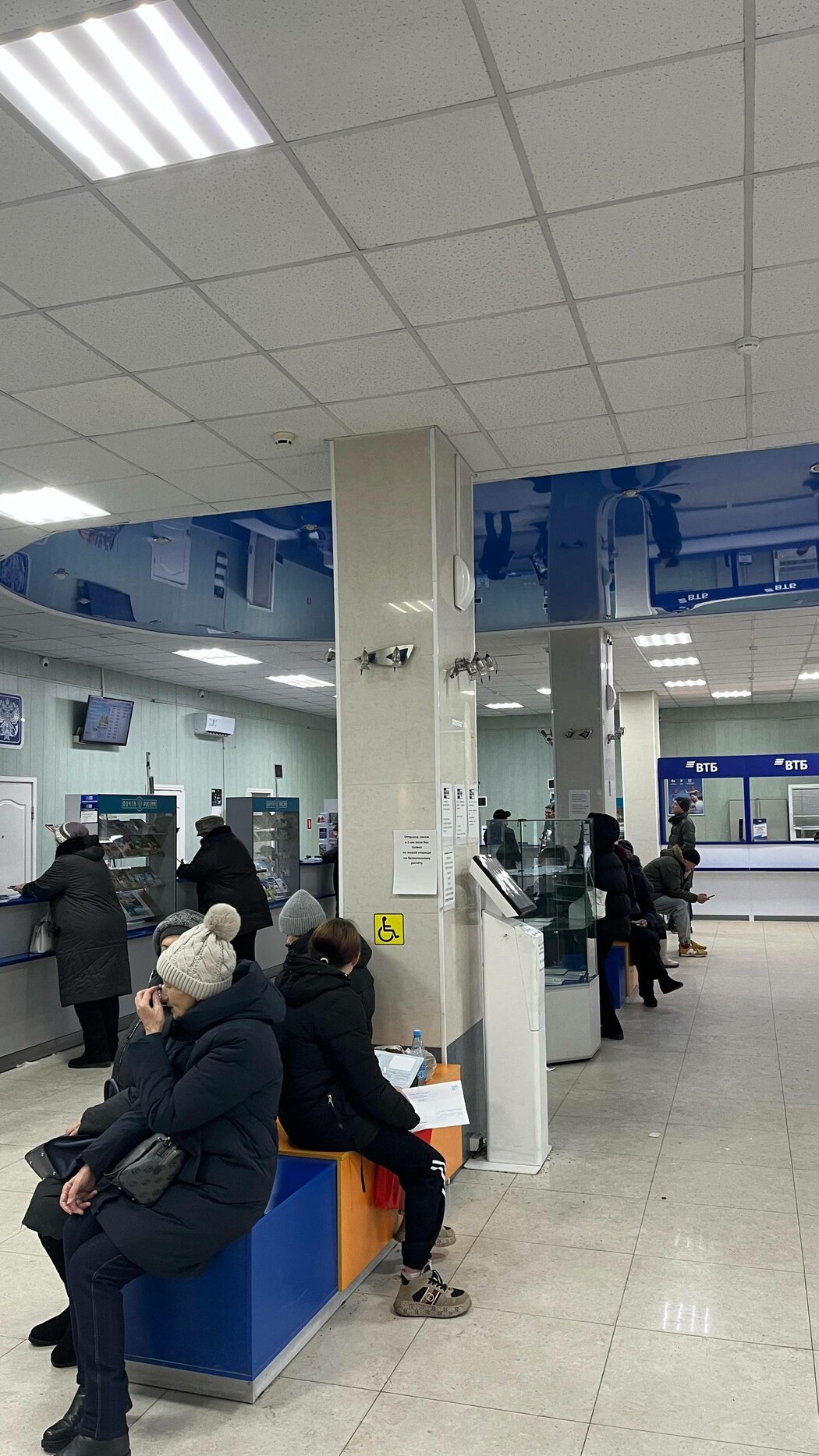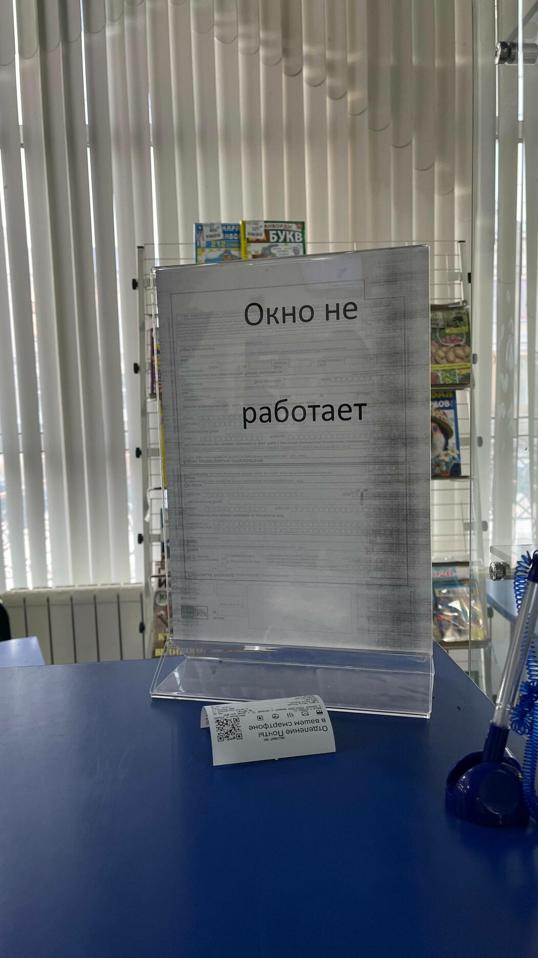 В итоге, чтобы отправить письмо, у нее ушло около трех часов. На фото, которыми она поделилась с редакцией, видны пустые окна отделения, где нет сотрудников.