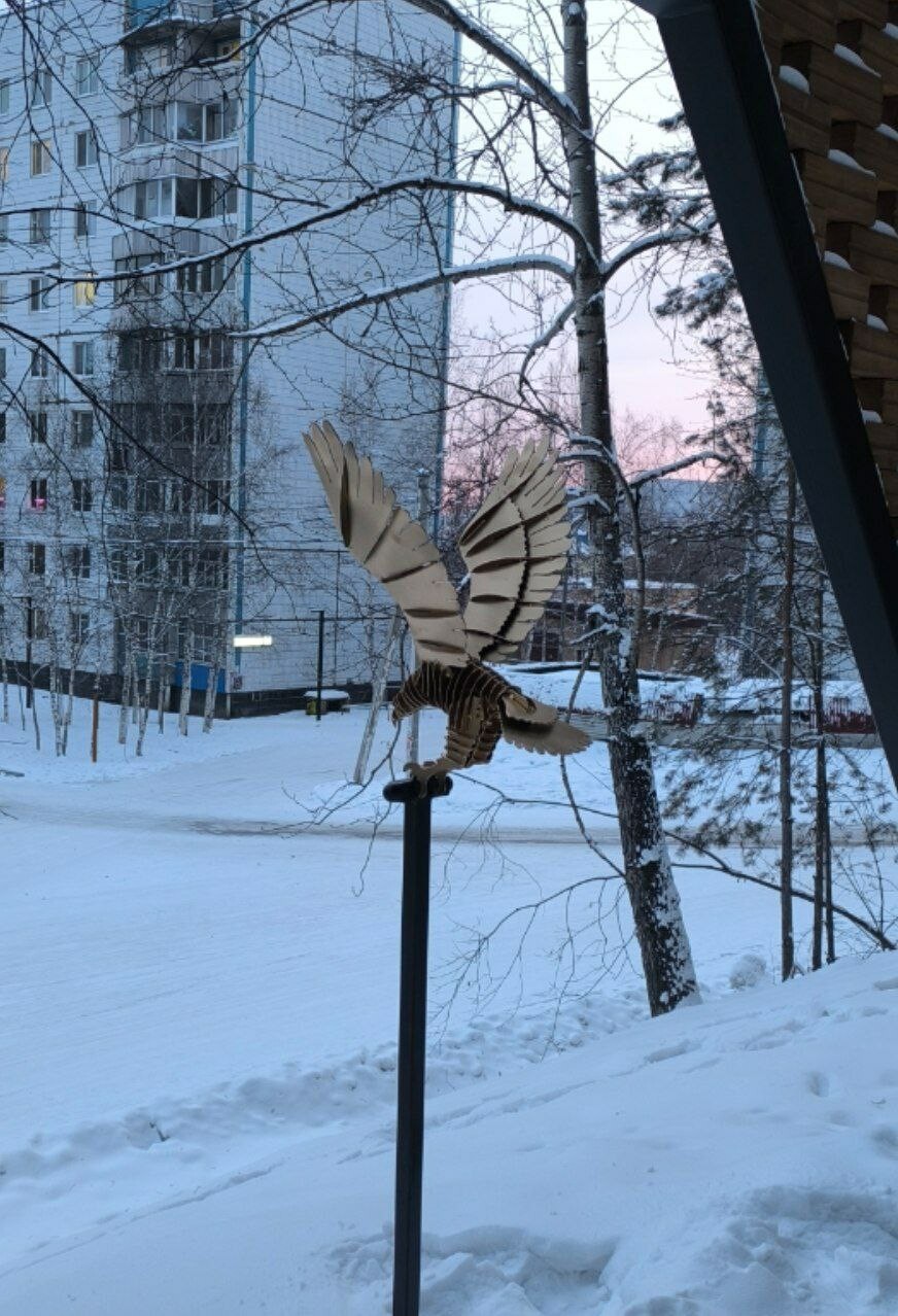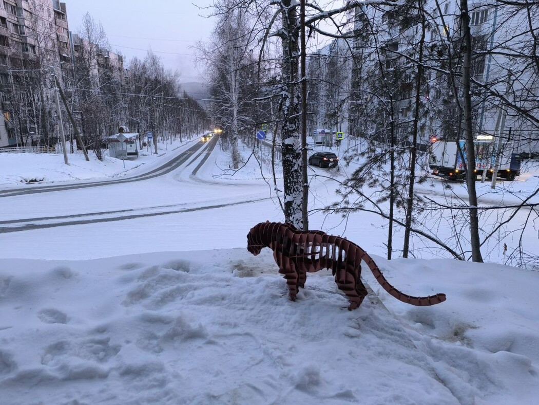 В воскресенье в Тынде стало больше необычных жителей. Это орел, тигр и маленький воробей. Причем местом их жительства стала недавно отреставрированная улица Школьная. Ее выбрал местный Левша – тындинский умелец Константин Швец.