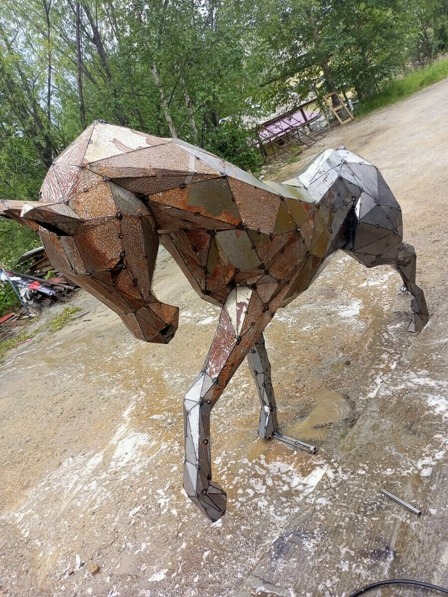 Благодаря таланту Константина в Тынде появились и другие не менее завораживающие фигуры из металла. Так, мужчина самостоятельно соорудил ангела из колец водопроводной трубы, лошадей в натуральную величину из металла и даже Муми-тролля.