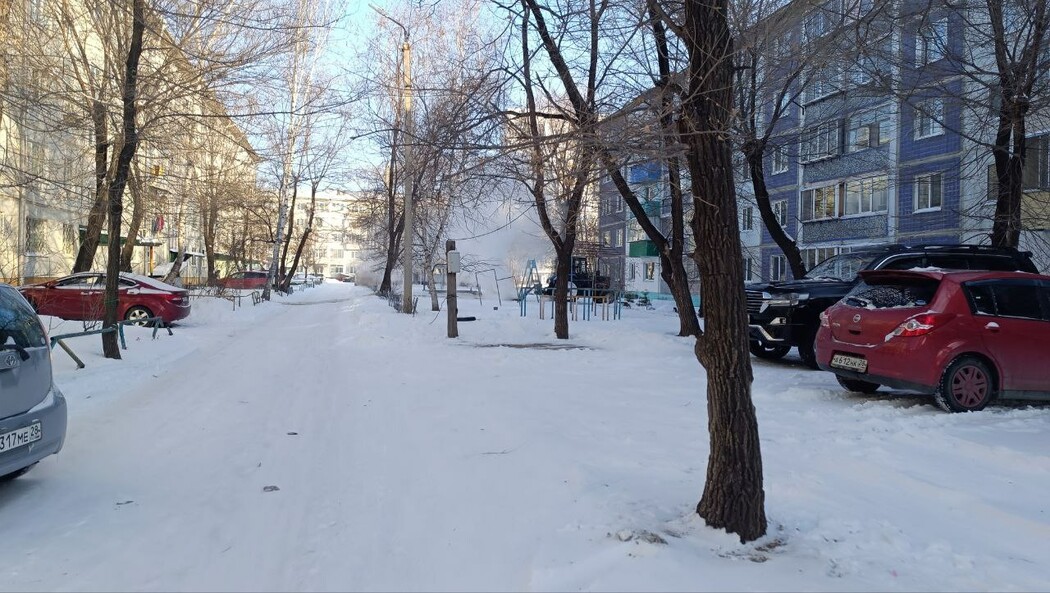Корреспондент Amur.life сообщает о том, что парит в двух местах: в районе детской площадки домов 30 и 34 по Студенческой и в ста метрах от нее.