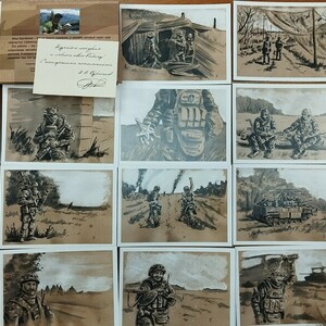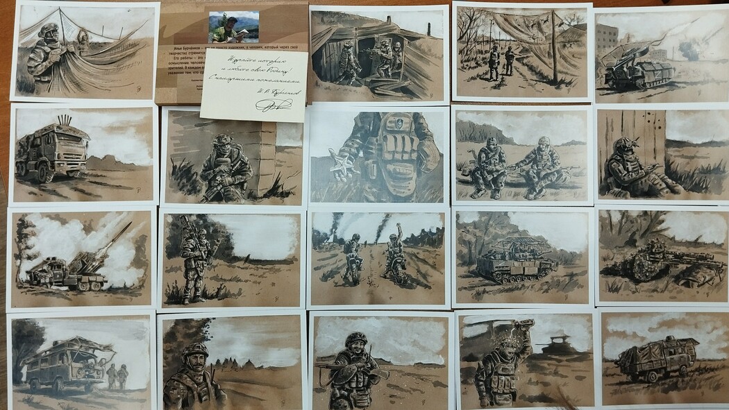 После спектакля состоялось его обсуждение, а также презентация набора открыток Ильи Бурченкова - художника-самоучки, участника специальной военной операции.