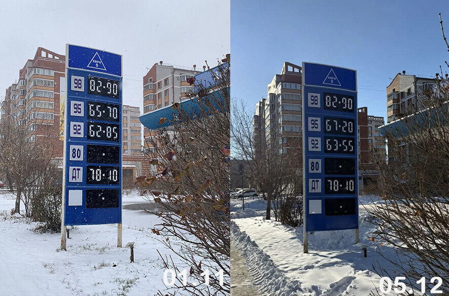 В сети ДНК цены на топливо изменились, но не на всё. АИ-95 остался по прежней цене – 79 рублей 92 копейки. АИ-100 подорожал на 1 рубль, и теперь вместо 85,30 нужно заплатить за литр 86,30 рубля. АИ-92 подорожал на 50 копеек и теперь стоит 76,90 рубля вместо 76,40 рубля. Дизель вырос в цене значительно. В ноябре литр стоил в этой сети 77 рублей, а уже в декабре за него придется заплатить 86 рублей. Подорожание составило 9 рублей.