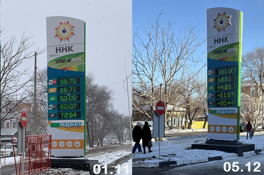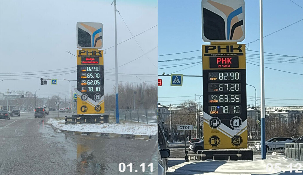 На заправках ННК цена выросла на все виды топлива. АИ-101 подорожал на 2 рубля 25 копеек. Вместо 98,75 теперь литр стоит 101 рубль ровно. АИ-95 и АИ-92 подорожали на 1,8 рубля. В начале ноября литр 95-го можно было купить за 66 рублей 71 копейку. А вот в декабре уже придется отдать 68 рублей 51 копейку. АИ-92 стоил 63 рубля 05 копеек, а в декабре за литр придется заплатить 64 рубля 85 копеек. На 1,8 рубля подорожали и два вида дизеля. Улучшенный дизель теперь стоит 81,87 рубля вместо 80,07 рубля, а обычный дизель подорожал до 80,44 рубля. В ноябре его можно было купить за 78,64 рубля.