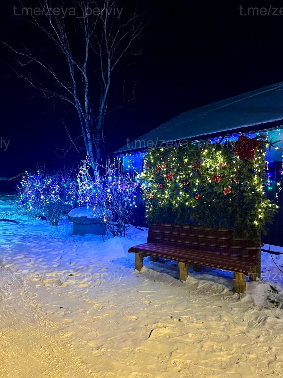 Еще одни яркие кадры размещены в соцсетях из города Зея. Там создали чудесную новогоднюю фотозону на улице Октябрьской местные жители.