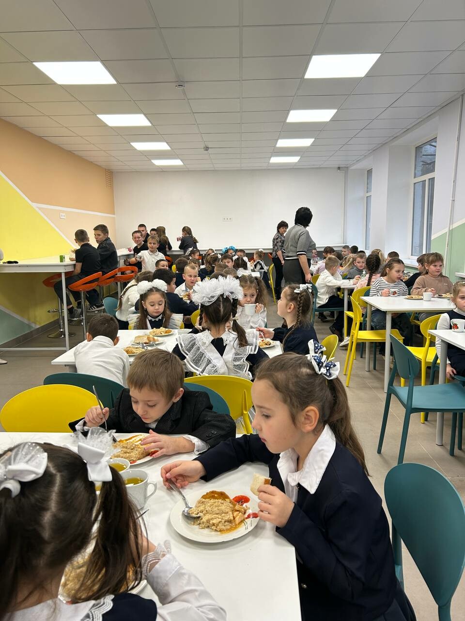 В обеденной зоне, где сейчас будут питаться 393 школьника, созданы такие же условия, как и в школьных кафе Амурской области, – современные и максимально комфортные.