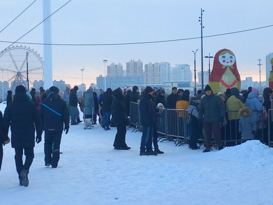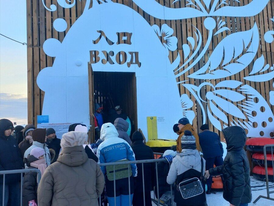 У входа на горку строит тепло одетый сотрудник – ему приходится работать на морозе целый день. Он пускает внутрь строго по четыре человека – горка четырехполосная, и по каждой полосе съезжает только один человек. Еще один сотрудник дежурит внизу – следит, чтобы катающиеся не сталкивались внизу друг с другом. Так что властям надо отдать должное: организация на высоком аттракционе – на высоте.