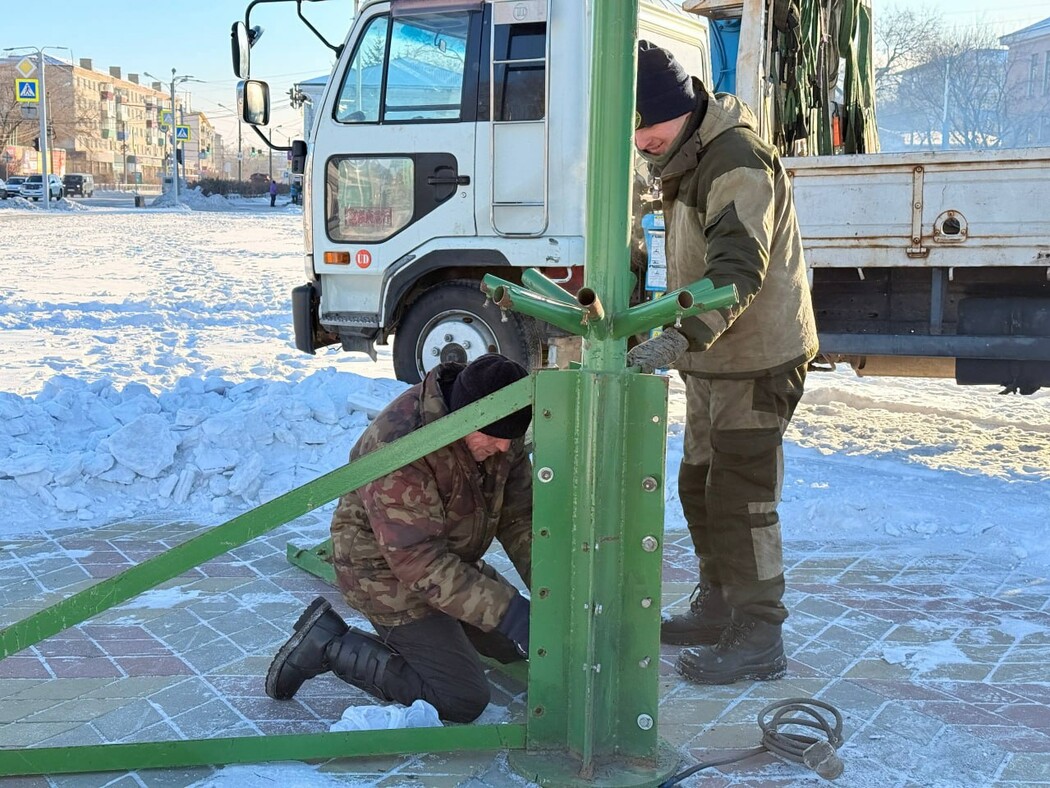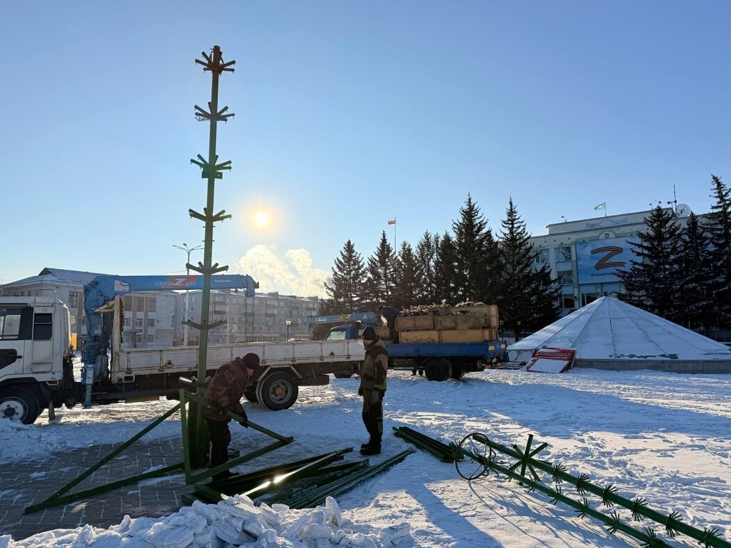 В Белогорске на площадь имени 30-летия Победы специалисты подрядной организации из Хабаровска начали доставлять лед для ледовых композиций, а специалисты службы по обеспечению деятельности органов местного самоуправления приступили к установке главного атрибута Нового года – новогодней ели.