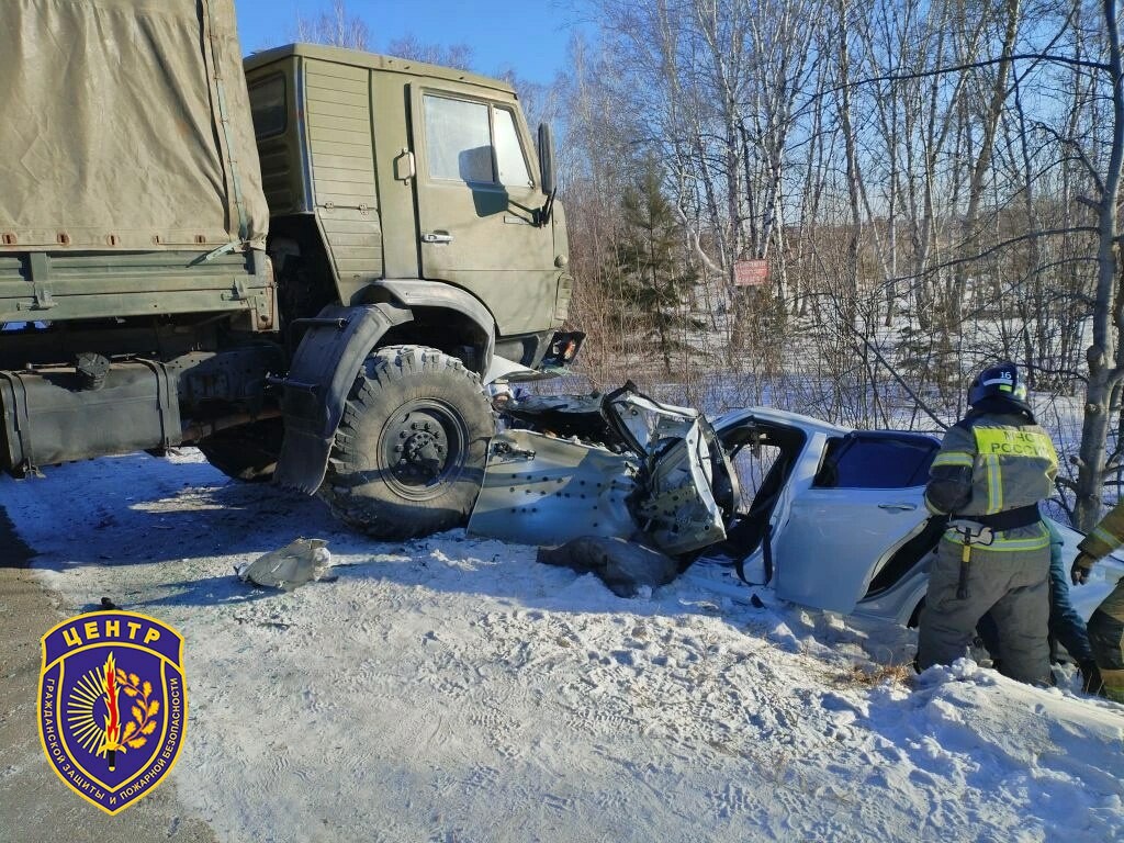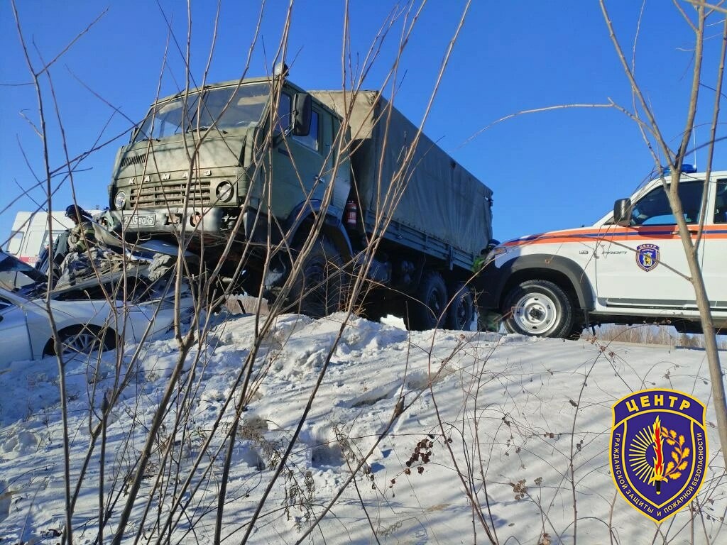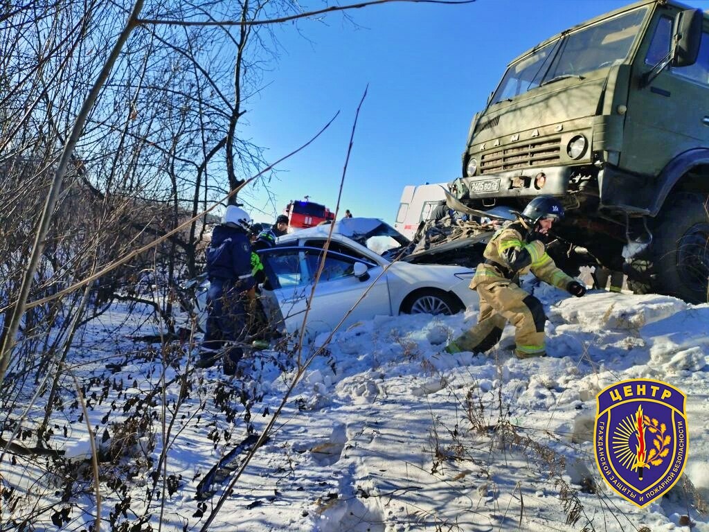 В Свободненском районе понадобилась помощь спасателей при серьезном ДТП. Около 11:00 на федеральной трассе «Амур» столкнулись КамАЗ и Toyota Camry.