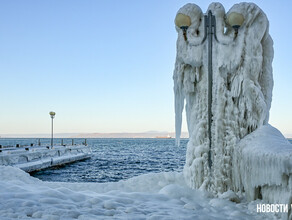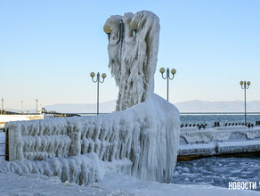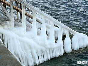 На Юбилейном пляже весь прогулочный настил теперь белый и ледяной. А лестница клуба любителей зимнего плавания, ведущая в море, получила изящные белоснежные балясины. Там, где летом кипит барная жизнь, сегодня ни души. Закрытые на зиму заведения «законсервировались» толстой ледяной коркой, сообщает Vl.ru.