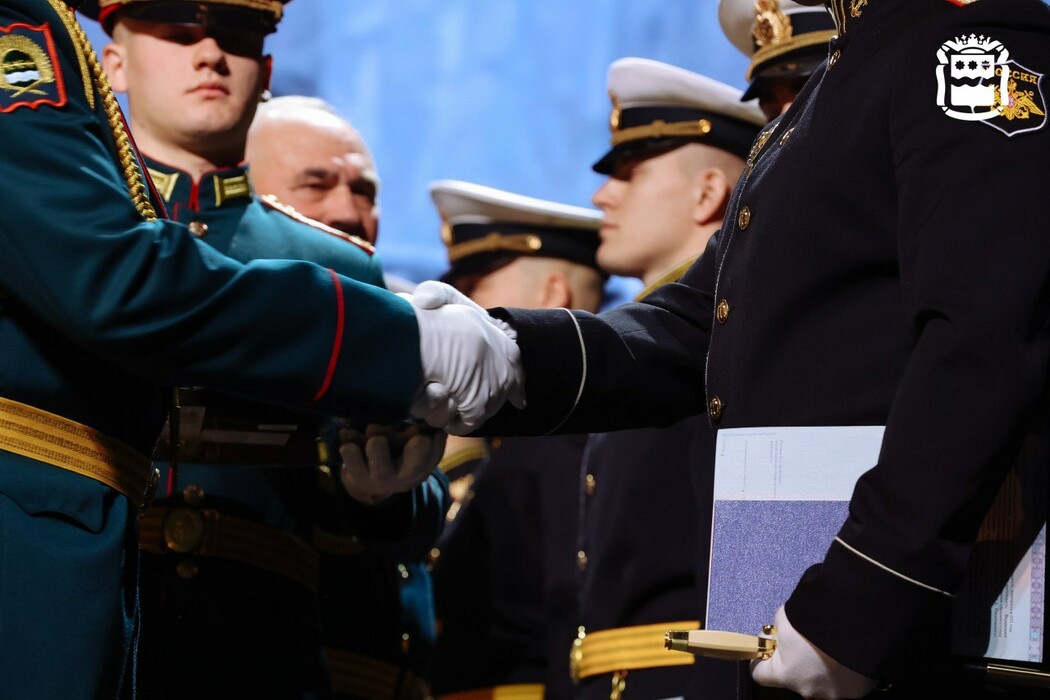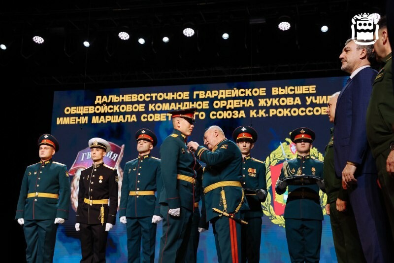 «Товарищи офицеры, поздравляю вас с успешным завершением обучения! В этом году ДГВОКУ присвоено почетное наименование «гвардейское». Это заслуга всех без исключения выпускников училища. Уверен, что и вы также достойно, высоко и гордо понесёте знамя ДГВОКУ во славу нашей Родины и на страх врагам. Мы вами очень гордимся. Желаю вам успехов», – обратился к молодым офицерам губернатор.