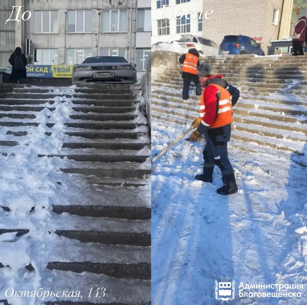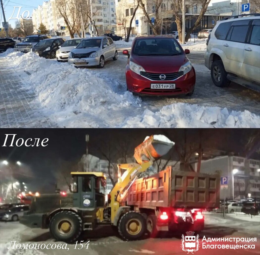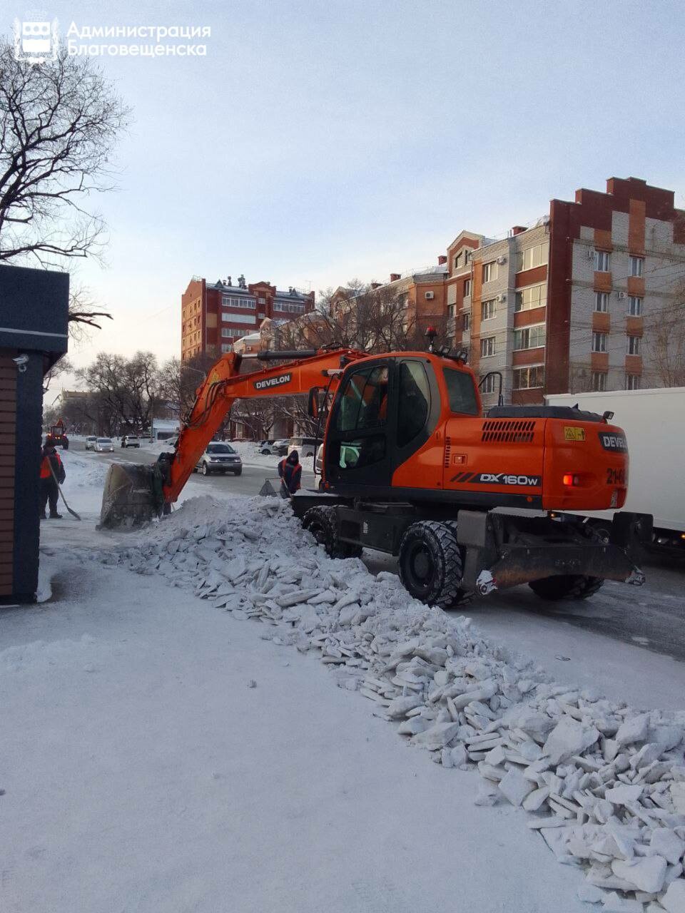 В Благовещенске продолжается расчистка территорий от снега. С начала снегопада сотрудники ГСТК вывезли больше тысячи тонн, очистили около 50 километров тротуаров и почти 70 километров дорог. Работы велись и по заявкам жителей областного центра.