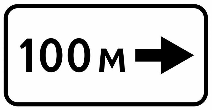 8.1.3 и 8.1.4 «Расстояние до объекта» — информационные таблички применяются с предупреждающими знаками для информирования о расстоянии до поворота или съезда.