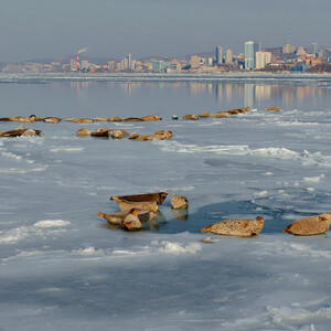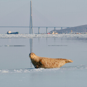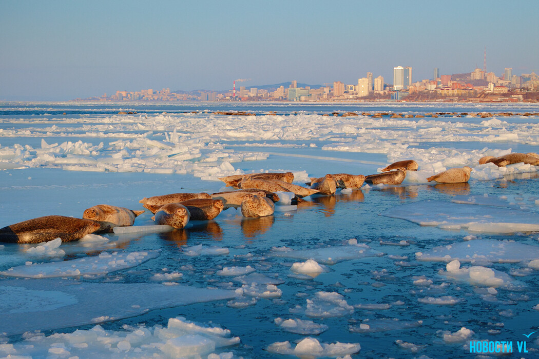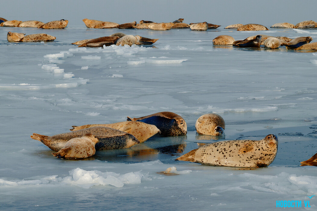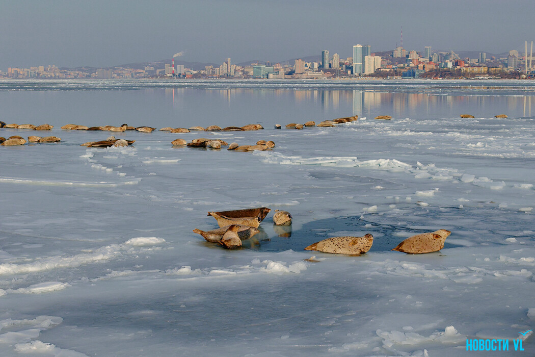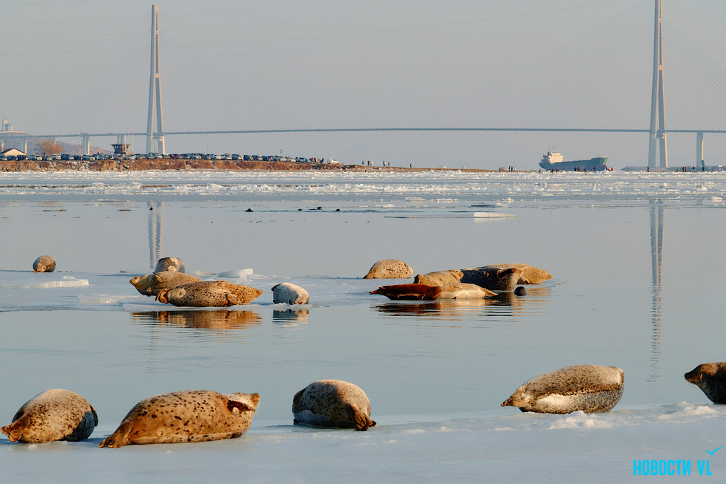 Тюлени ларги второй день отдыхают возле Токаревского маяка во Владивостоке. Эти любопытные морские обитатели считаются одним из символов Приморского края. Их часто можно встретить вдоль побережья Японского моря, в том числе в окрестностях Владивостока.