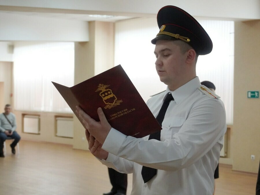Церемонию открыл начальник ЦПП УМВД России по Амурской области полковник полиции Игорь Сиротин. Он поздравил сотрудников с этим знаменательным событием в их жизни и служебной карьере. Также с напутственным словом к молодым коллегам обратились члены Амурского совета ветеранов органов внутренних дел и внутренних войск: полковник милиции в отставке Сергей Серополов и подполковник милиции в отставке Юрий Тарасенко, сообщает пресс-служба региональной полиции.