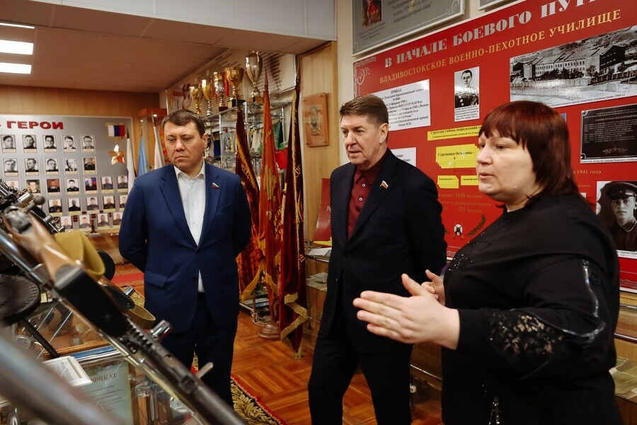 Посетили сенаторы и Дальневосточное гвардейское высшее общевойсковое командное училище. Одно из старейших военно-учебных заведений страны, которому в прошлом году исполнилось 85 лет со дня образования, получило почетное наименование «гвардейское». За годы существования училища состоялось 114 выпусков, в его стенах подготовлено более 30 000 офицеров и прапорщиков. 15 тысяч из них были отмечены государственными наградами, 75 выпускников удостоены званий Герой Советского Союза и Герой России.