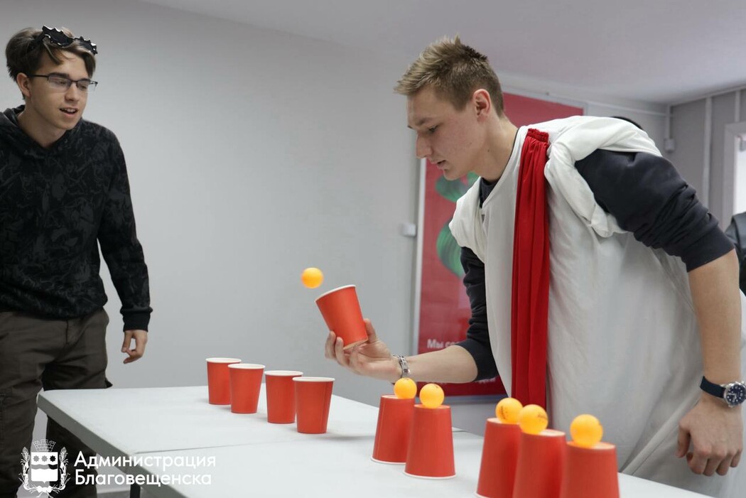 В Благовещенске в честь Дня студента состоялся необычный турнир – по тусологии. В нём приняли участие команды из разных учебных заведений города. Название тусология придумали сотрудники молодежного мультицентра. По сути, это весёлая серия командных игр, которые часто устраивают на вечеринках.