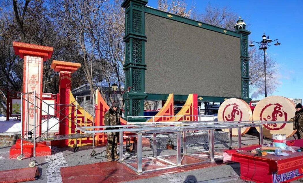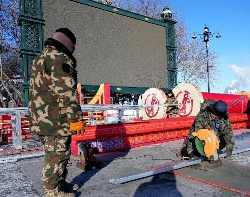 Город Хэйхэ начали наряжать к Новому году по восточному календарю. На площади Матери устанавливают декоративные инсталляции к году Лошади, в том числе китайские фонари, выполненные из шелковой ткани производства провинции Сычуань.