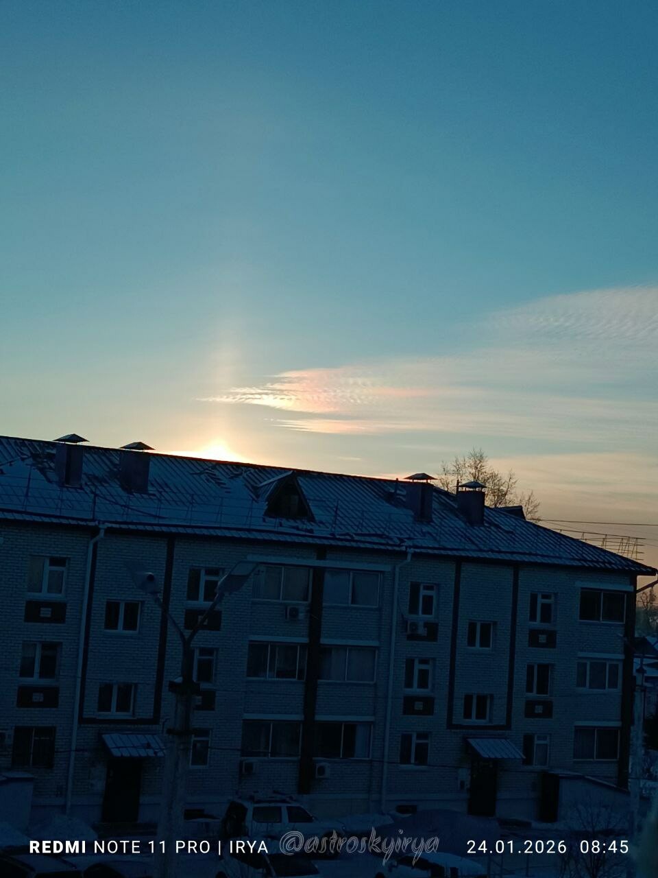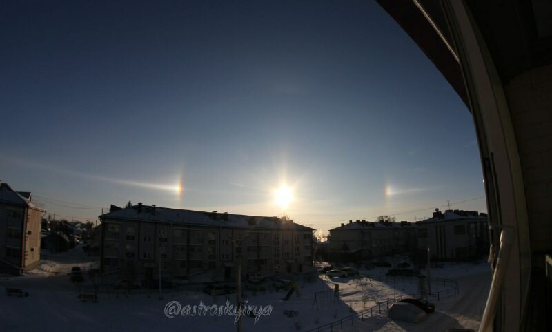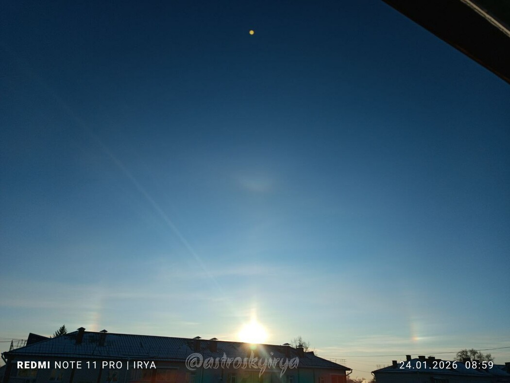 Кроме этого, в небе можно было заметить радужные облака и солнечный столб, сообщает Telegram-канал Небо над нами.