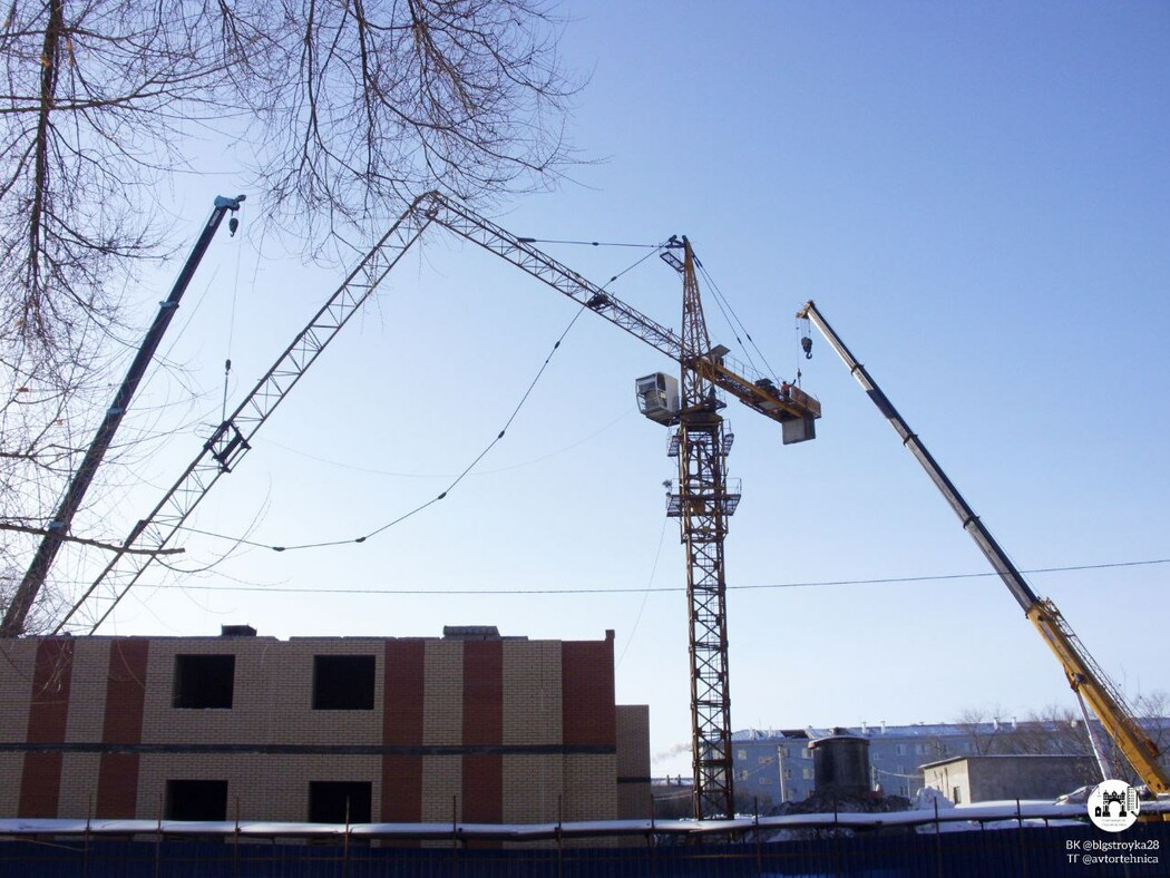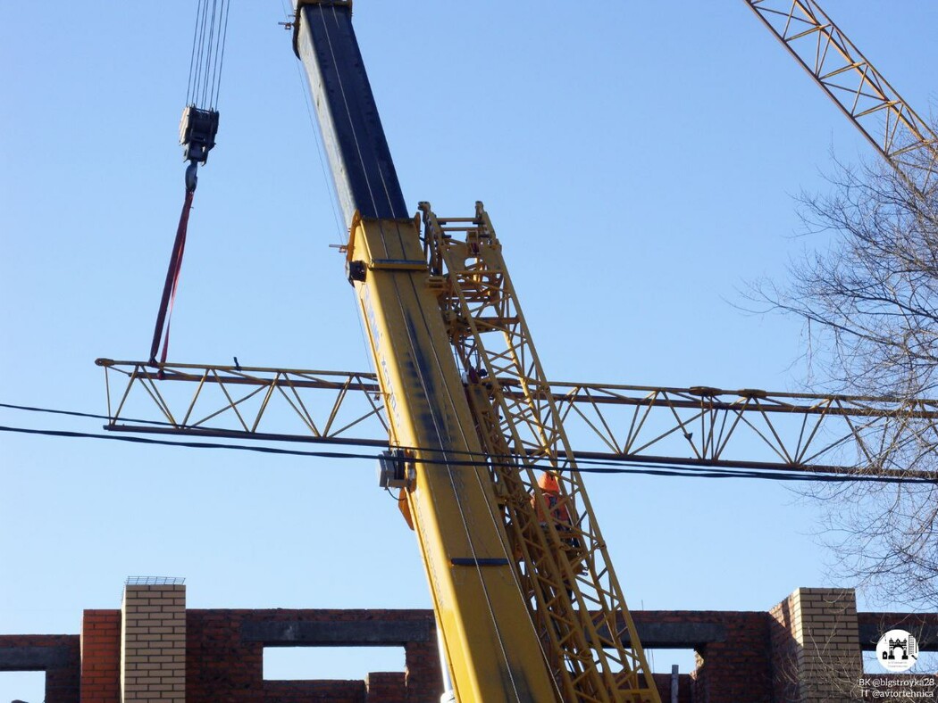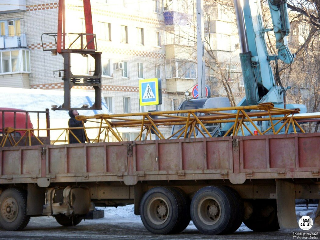 Об этом сообщает телеграм-канал «Благовещенск. Строительство». По информации паблика, в ходе работ были сняты плиты противовеса, демонтирован фрагмент стрелы. В работе задействована тяжелая техника.