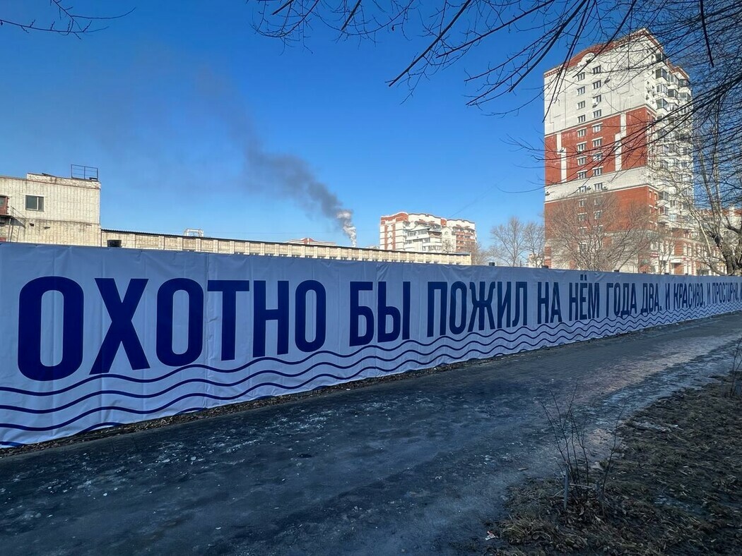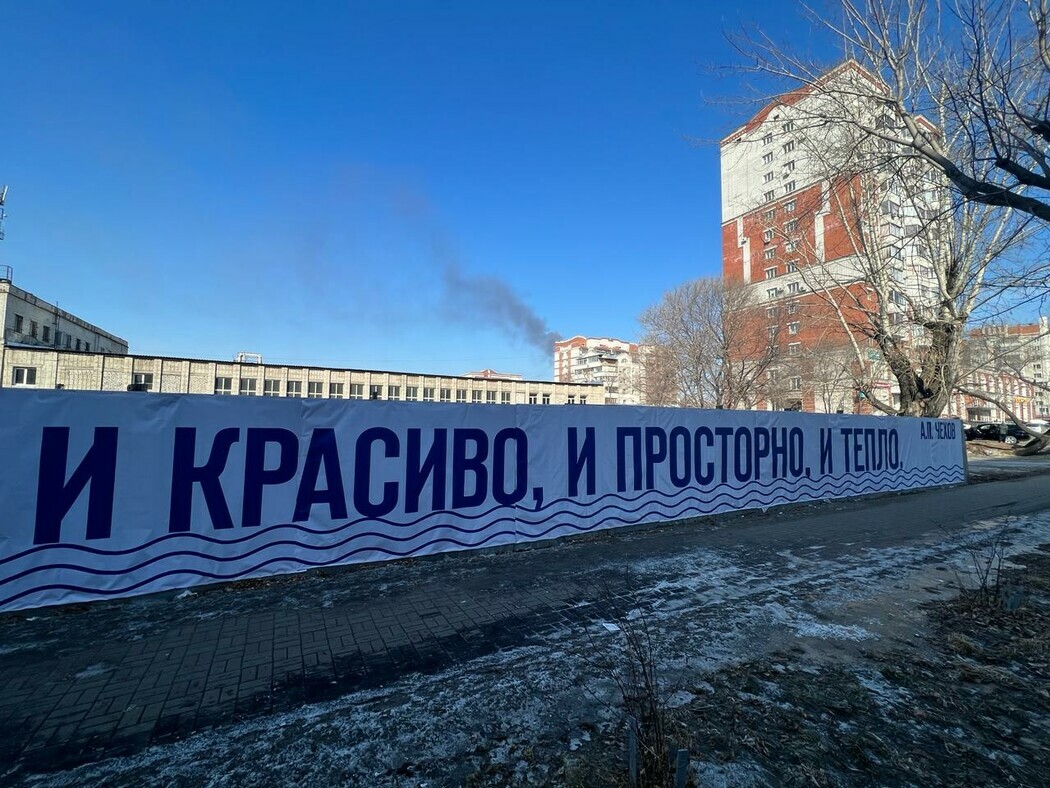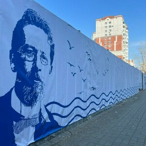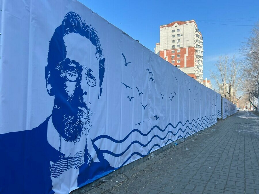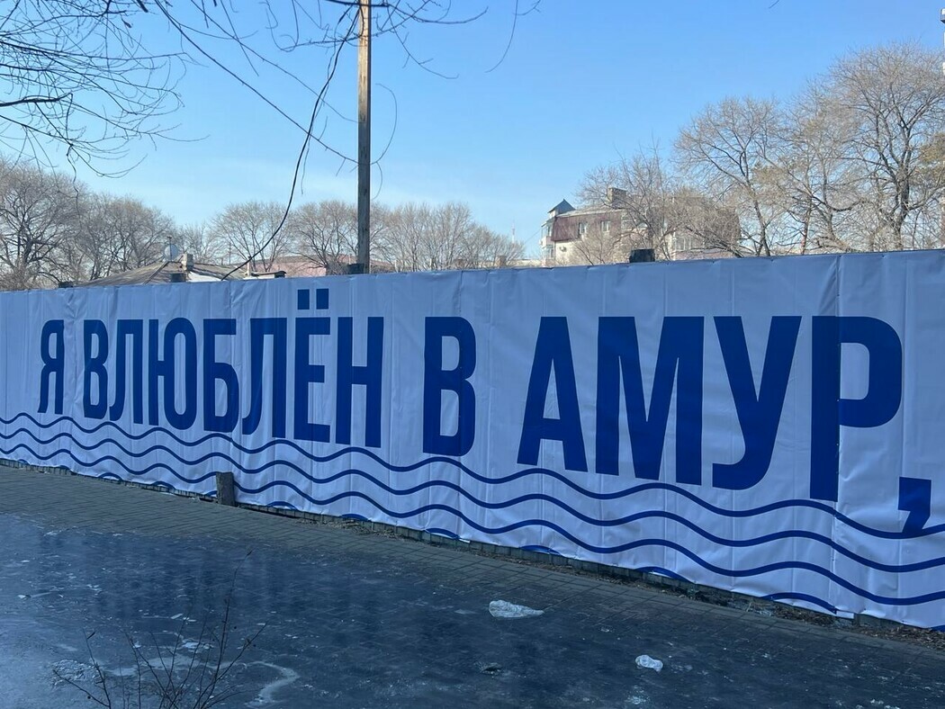 Баннер с цитатой Чехова установлен в Благовещенске на улице Калинина. Правда, цитата «Я в Амур влюблен; охотно бы пожил на нем года два. И красиво, и просторно, и свободно, и тепло» на благовещенском баннере получила некоторые изменения.