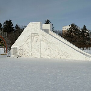 – Да, что они слишком крутоваты, надо 20-25 градусов, у нас 30, 35, 38. Сказали, это не соответствует ГОСТу. А люди катаются, им нравится. Если делать 20, 25, как мы сделали две горки в отдалённом посёлке, так с нее еле-еле скатываешься. Но какие размеры выдали – длина, ширина, такие горки мы и сделали. Эскизы, барельефы художественные – это я делал. А параметры выдавал заказчик. Получается, надо было горки длиннее делать, тогда бы скаты были более плавными. Но при этом горками пользовались все новогодние праздники, они функционировали.