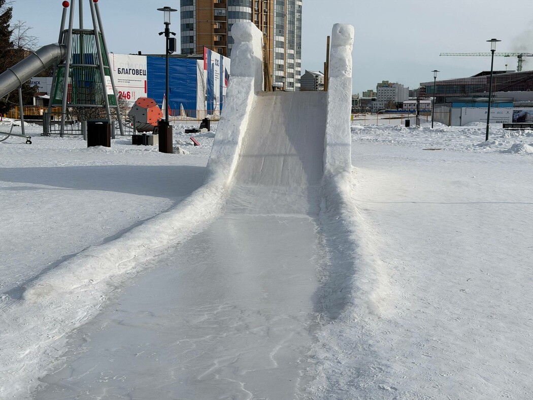 Ледовые фигуры на набережной Зеи, каток на территории Трибуны Холл и другие снежные горки по-прежнему на своих местах.