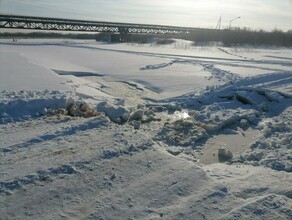 В Белогорске в ходе патрулирования на реке Томь обнаружен крупный провал льда. В этом месте проходит несанкционированная ледовая переправа, видны следы активной эксплуатации.