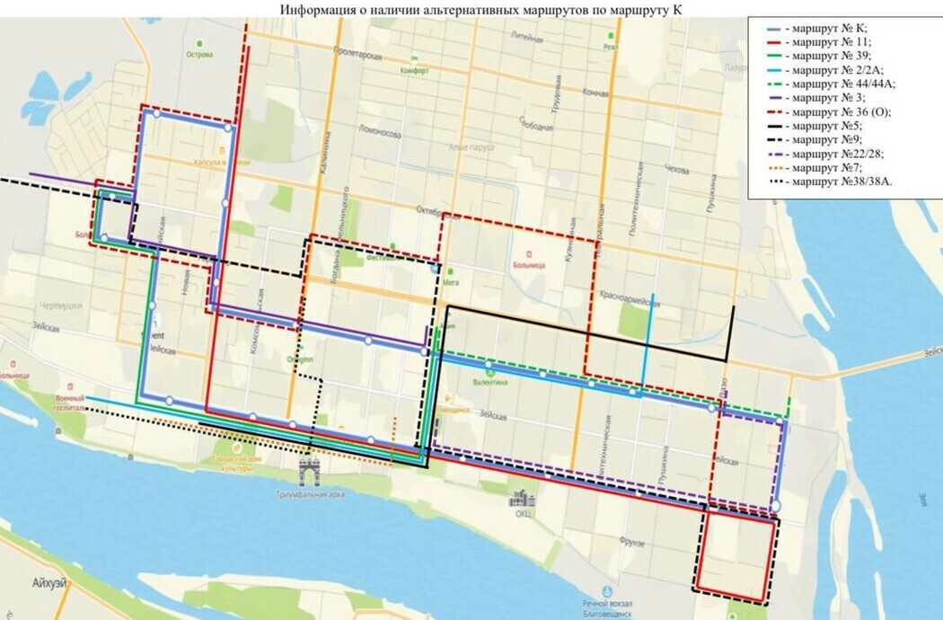 Также власти опубликовали схемы маршрутов, которые назвали альтернативными маршруту «К».