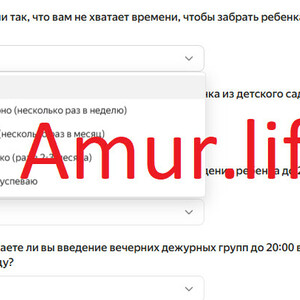 «Уважаемые родители! В связи с поручением президента РФ и стартом пилотного проекта в городе Благовещенске рассматривается возможность продления времени пребывания детей в вечернее время в дошкольных образовательных организациях до 20:00. Чтобы понять, насколько это изменение актуально именно для семей нашего города, просим вас ответить на несколько вопросов. Нам очень важно ваше мнение! Опрос анонимный, все данные будут использованы только для улучшения работы учреждений», – такие сообщения присылают в общие чаты родителей дошколят.